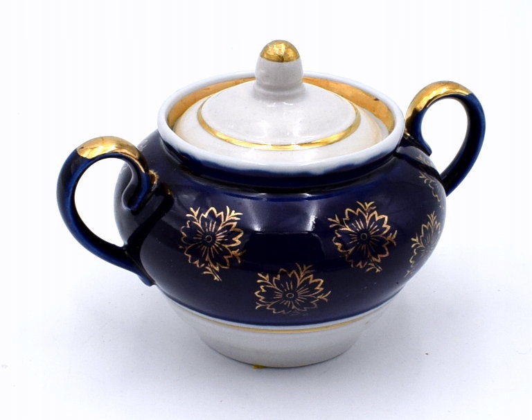 Красивую конфетницу из кобальтового фарфора, украшенную чудесным декором с позолотой - очень интересный, редкий драгоценный камень - красиво оформлена.