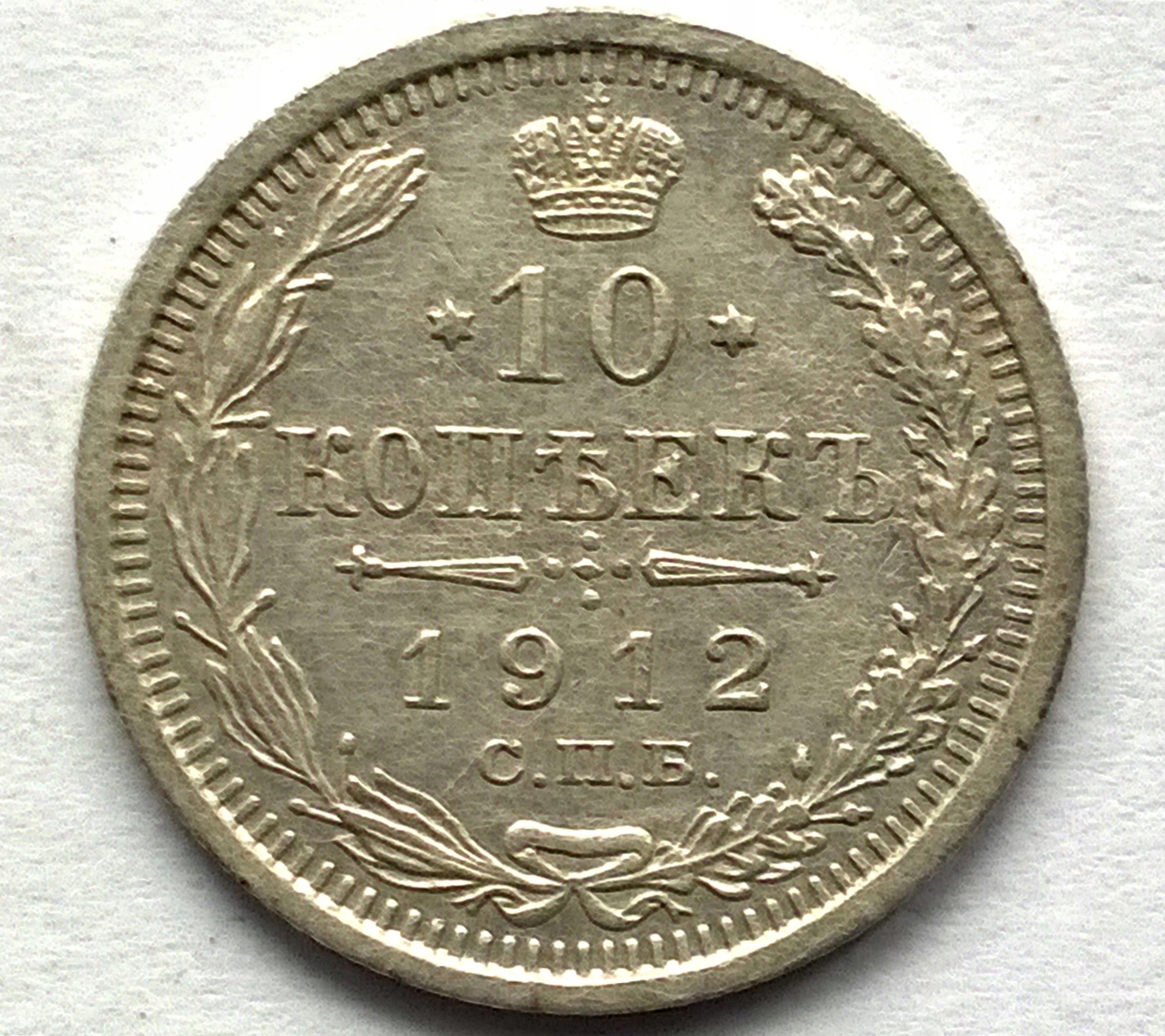 РОССИЯ 10 КОПЕЕК 1912 г. / серебро