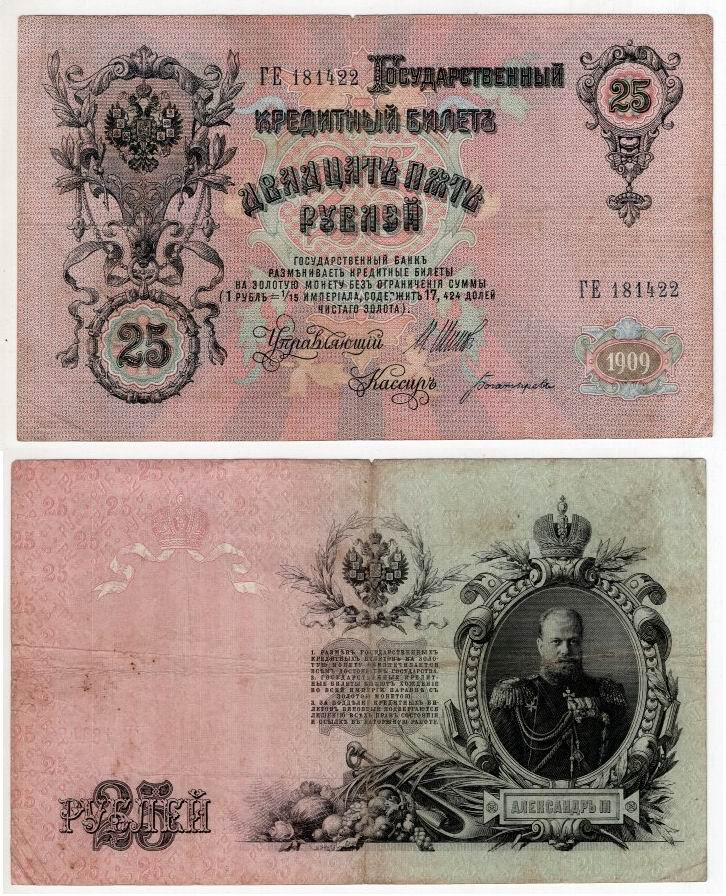 Россия 1909 25 рублей