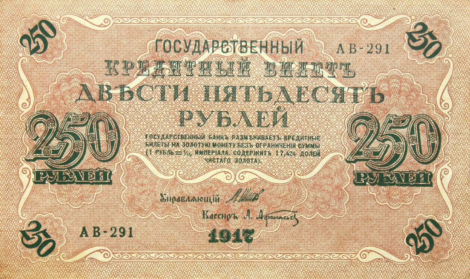 Россия CCCP СССР БАНКНОТ - 250 рублей 1917 SWASTIC