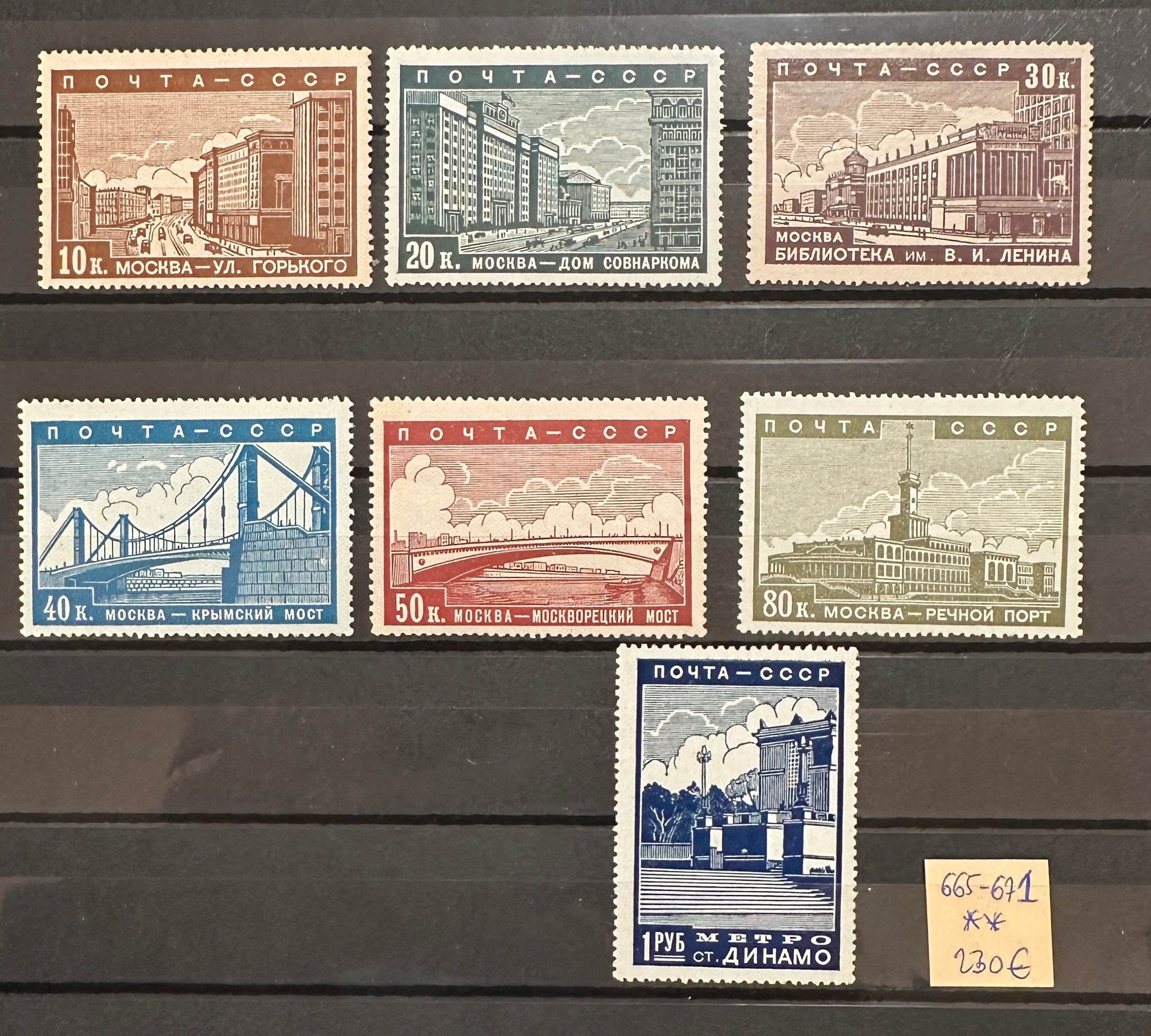 Россия Ми 665-671** 230 Евро. Изменение цвета резины. Один из них прилип к резине.