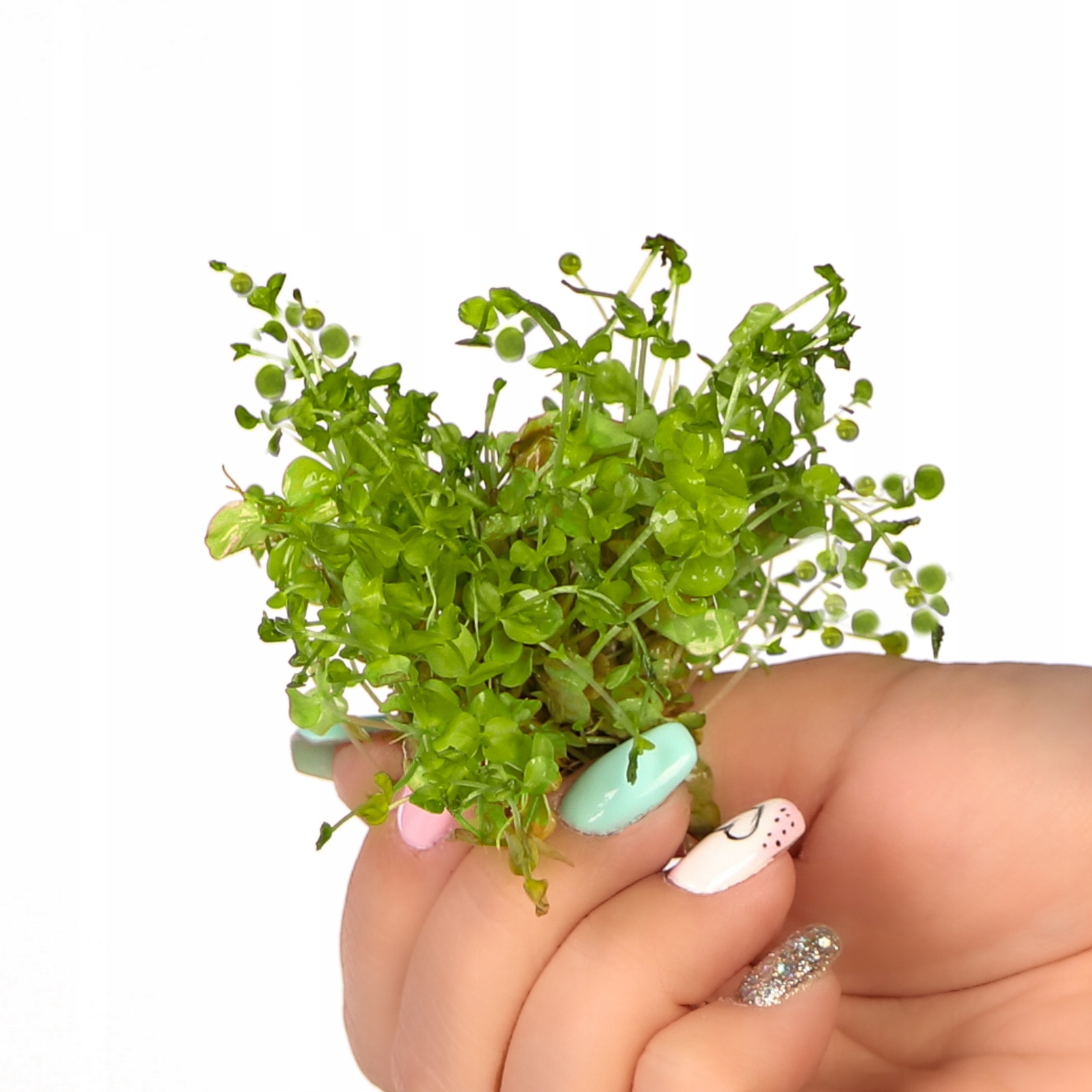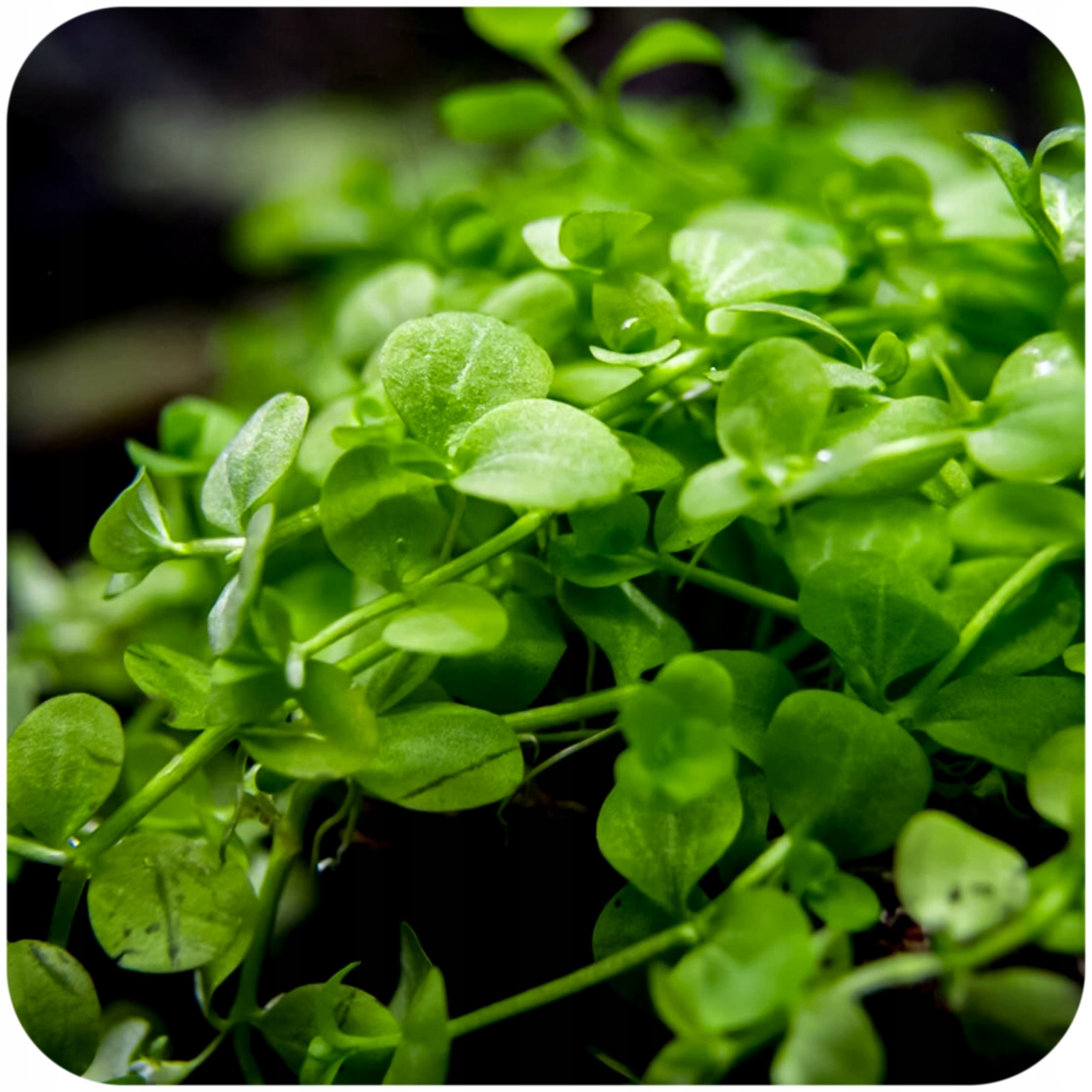 Низкорослое растение с округлыми плотными листьями. Он создает пышную зелень прямо у дна аквариума. Поэтому это аквариумное растение рекомендуется в качестве газонного растения. Нетребовательное растение – рекомендуется новичкам. При покупке вы получите 20 штук + в подарок.