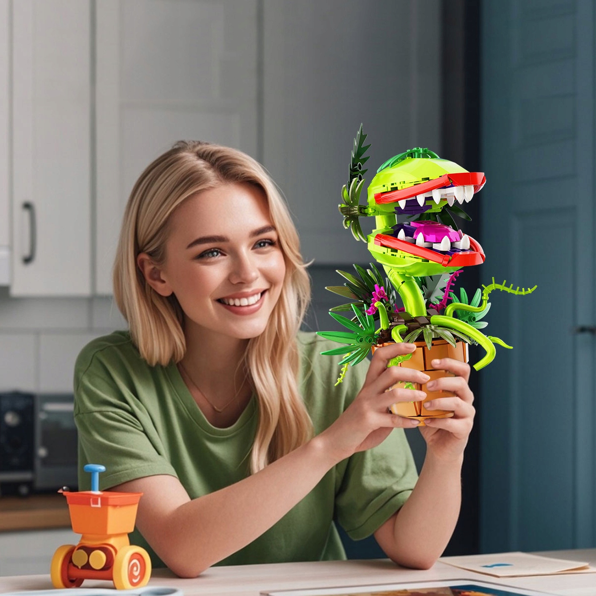 💎💎 НАБОР СТРОИТЕЛЬНЫХ БЛОКОВ: Почувствуйте ужас с набором строительных блоков «Цветок-растение-пиранья»! В набор входит 327 деталей, что делает его идеальным украшением стола или ярким дополнением вашего декора на Хэллоуин.