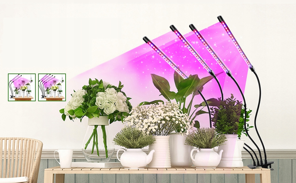 🌞 - Лампа для растущих растений оснащена 4 головками лампы, обеспечивая более широкую и более интенсивную зону освещения для лучшего покрытия растений.