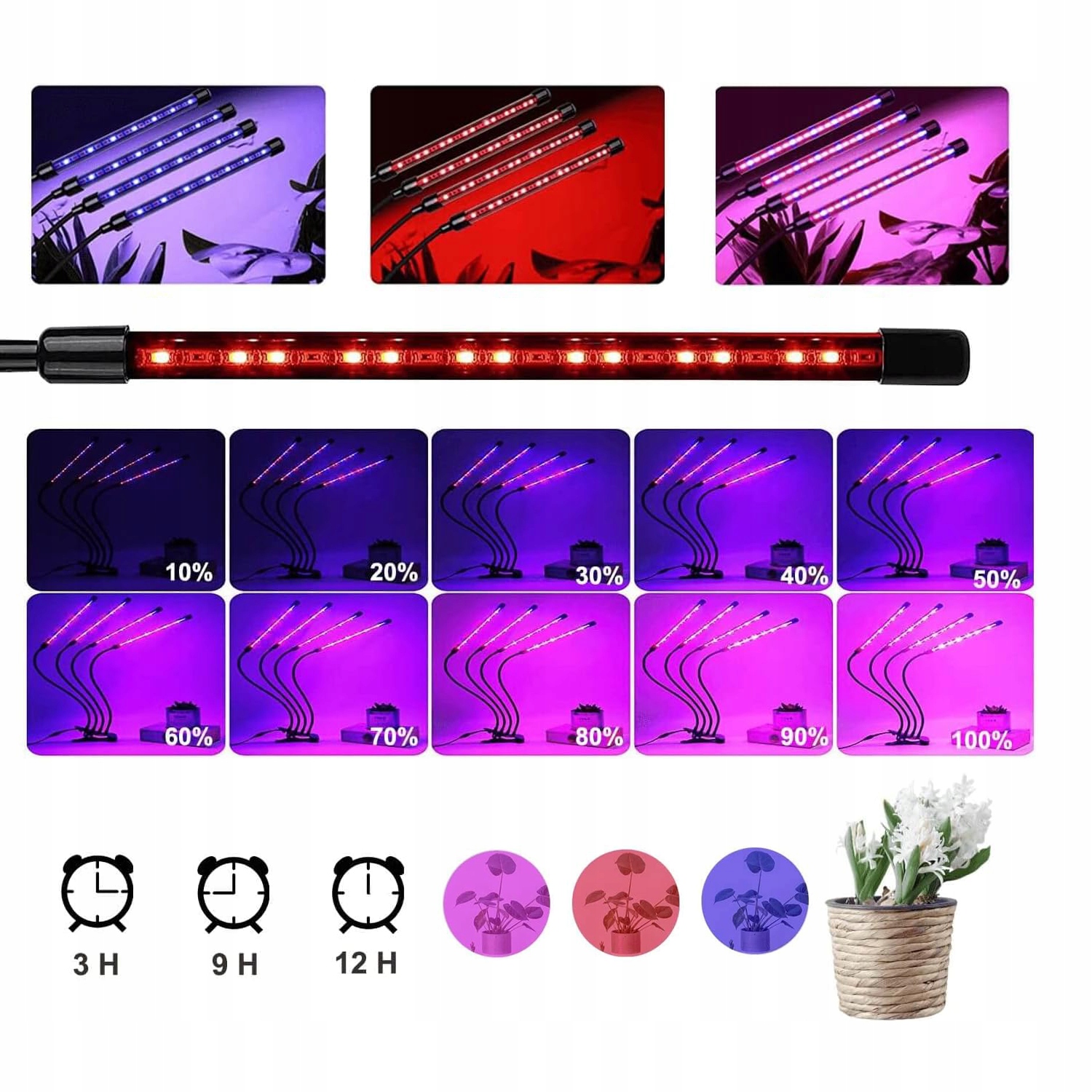 🌞 - с 3 модами (красный свет, синий свет и смешанный свет) Эта лампа для растущих растений в комнатах соответствует различным этапам выращивания растений. Строительство с регулированием яркости, 10 уровней яркости на выбор, гибкая регуляция яркости, когда растения имеют разные требования к интенсивности света.