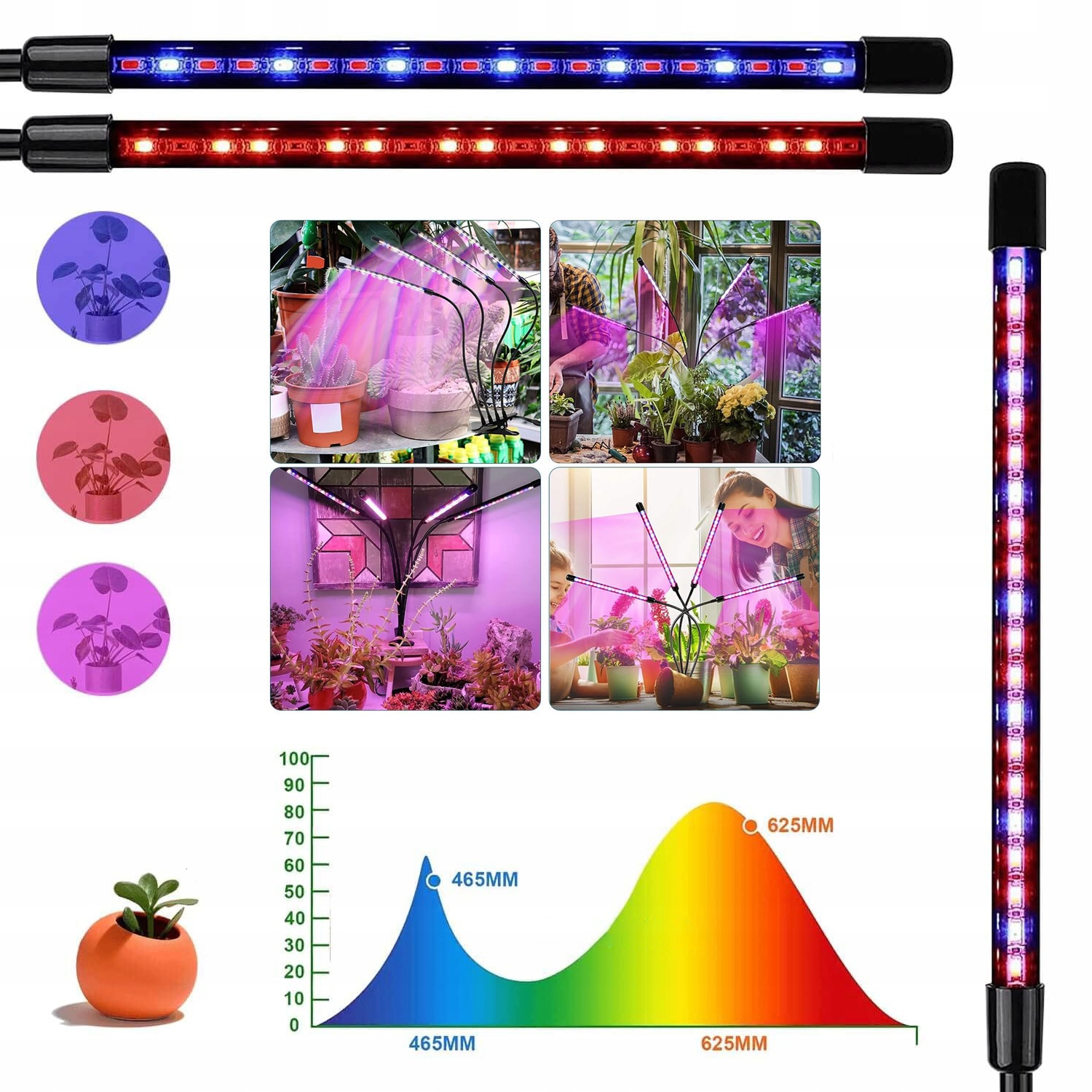 🌞 - Эта лампа выращивания растений содержит 80 -й (52 красного + 28 синего), чтобы растения могли эффективно фотосинтез.