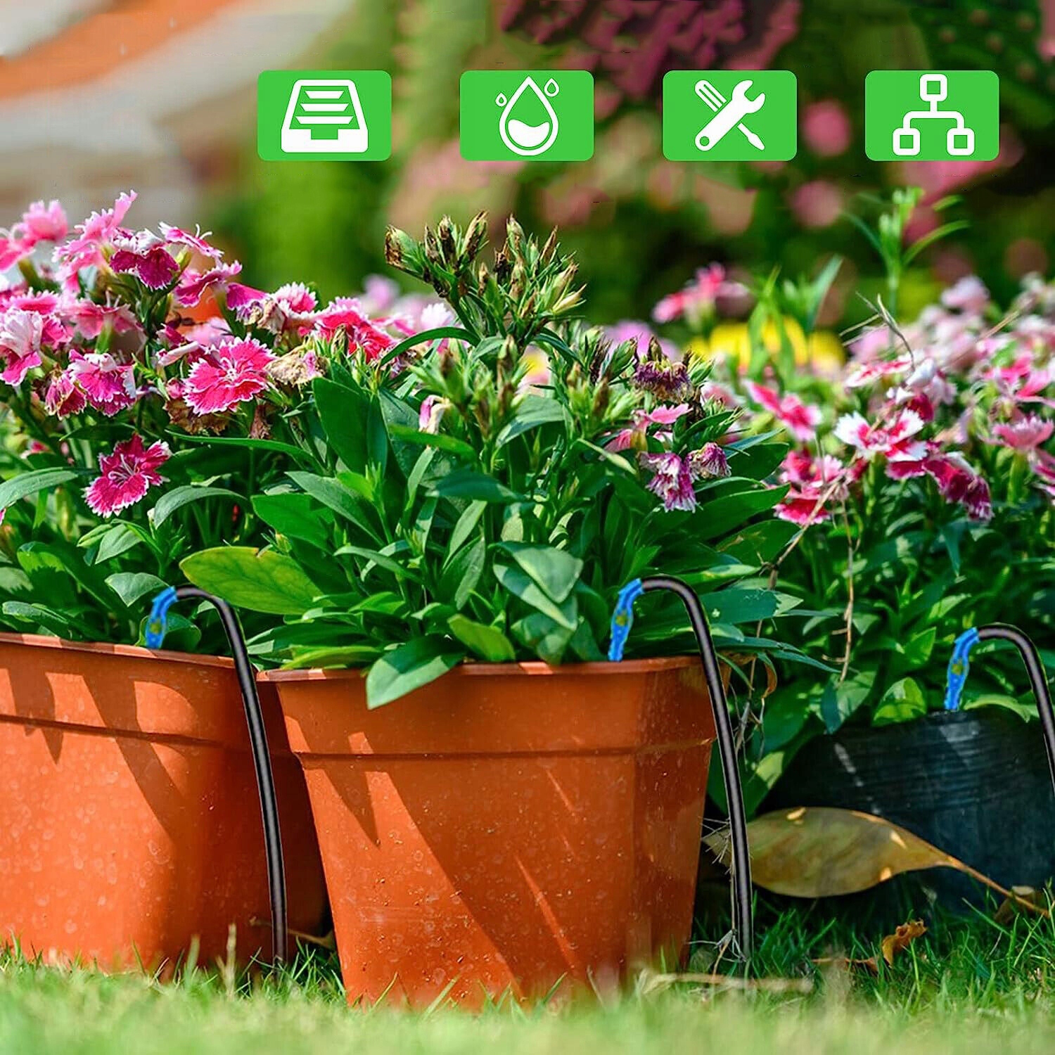 🍀【 Автоматическая система орошения или в отпуске. Установите интервал времени (от 1 до 9 дней) и время полива (от 1 до 99 секунд). После программирования этот автоматический комплект для полива будет поливать растениями для вас. Устройство для водопоя растения оснащено фильтром, который предотвращает его зарядку. Вода в воде в спальне, на балконе или в саду для самоочитывающих домашних растений. Обычно его можно использовать в течение 2 месяцев после полной зарядки. Включение легко создавать собственную систему орошения в комнате. Набор подходит для подвешивания, горшечных растений и даже цветочных слоев. Подходит для полива суккуленты в горшках, цветах, растениях и овощах и идеально подходит для семей, садов и офисов