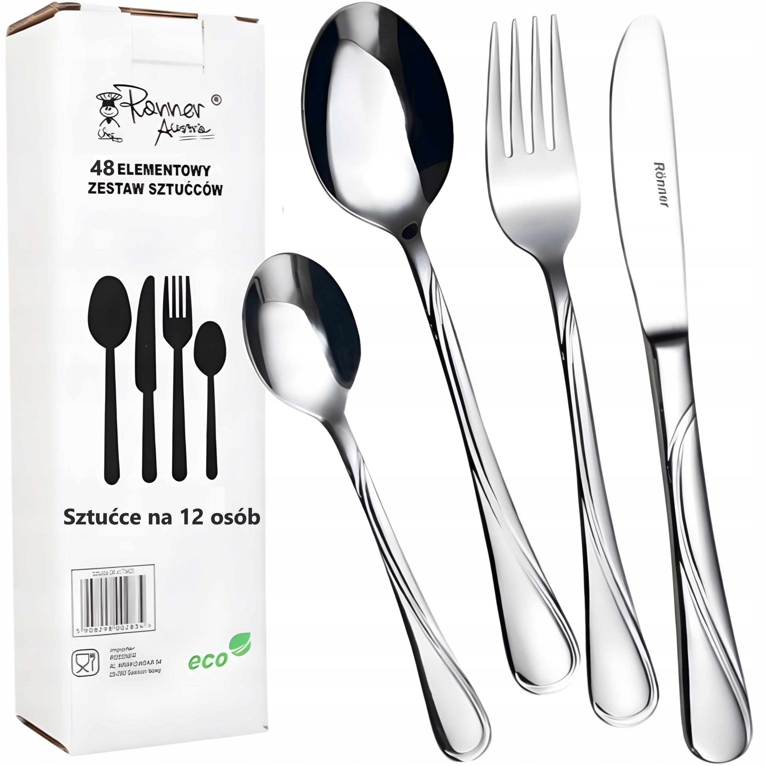 ROSSNER СТОЛОВІ ПРИЛАДИ НАБІР СТАЛЕВИХ СТОЛОВИХ ПРИЛАДІВ 48ЕЛ ОБІДНІЙ СЕРВІС НА 12 ОСІБ