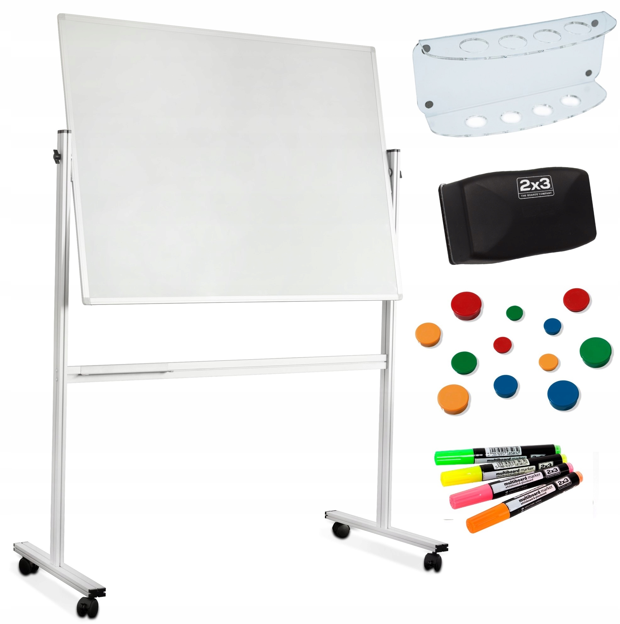 белый двойной мобильный ротационный таблица 180x120 см в наборе с маркерами, чистящими средствами, держателем, магнитами и полкой! h1>