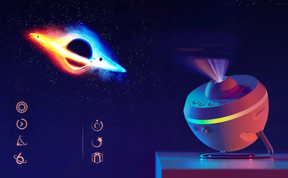 【Реалистичный галактический проектор 】 Это Projector Galaxies Для спальни с 13 сценариями дисплея вы можете свободно выбрать тот, который вам нравится. Есть также 6 цветов прикроватных ламп на выбор. Звезды, разбросанные по комнате, представляют волшебное шоу звездных огней в комнате. Эта проекционная лампа имеет фокусную регулировку, которая может регулировать ясность сцены на расстояние проекции. места. Благодаря двум вариантам автоматического таймера, нажмите его и отключится автоматически после времени, не мешая сон и вашего ребенка.