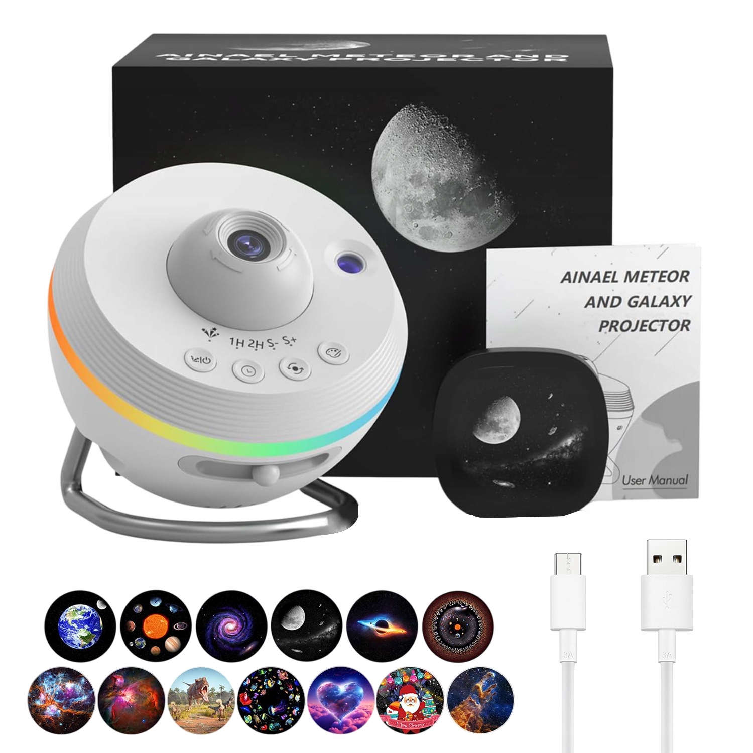 【Простая в использовании для детей пленки - Включите переключатель - отрегулируйте фокус. Простой дизайн идеально подходит для детей. Интересное ручное переключение листов фильма помогает в хорошем интеллектуальном развитии детей. Декоративное кольцо обеспечивает шесть режимов освещения: радуга, красочная, текущая вода, ослепительная, холодная белая и теплая белая, а яркость может быть свободно регулирована. Существует также вращающийся элемент с метеористом с регулируемой скоростью вращения, который позволяет вам свободно создавать свой собственный метеорный дождь, будь то дело медленного обезвреживания небес или страсти быстрого трансфера, это может быть легко достигнуто 【Лучший подарок для детей и украшений】 Starry Night Light Projector может украсить детскую комнату, детскую комнату и спальню. Он может сопровождать мальчиков и девочек в росте, тихий двигатель и вращающееся небо также помогает спокойно и спокойно и быстро засыпает. Идеальный подарок как для взрослых, так и для детей. Идеально подходит для детской комнаты, домашнего кинотеатра, дней рождения, мероприятий, рождественских украшений и годовщинов