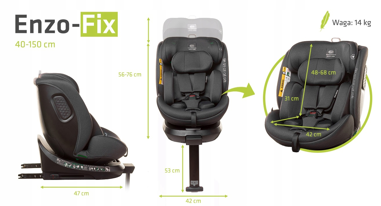Однако мы рекомендуем перевозить ребенка в положении RWF ростом до 105 см, ENZO-FIX — одна из первых моделей, предоставляющая такую возможность и адаптированная под нее!