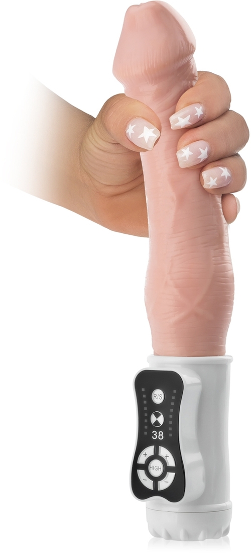 Вибратор, сочетающий в себе целых 38 секс-функций – вы можете выбрать любое сочетание вибраций и пульсаций с вращением и скользящим движением или использовать отдельные функции самостоятельно. Вам решать, как вы хотите развлечься. Вы можете включить сразу все 38 функций, которые будут автоматически циклически меняться и постепенно разогревать вашу киску, приводя к влажному и громкому оргазму. Вы также можете свободно комбинировать функции и настраивать оптимальную интенсивность ласк по своим предпочтениям. Интеллектуальная кнопка HIGH включает самую интенсивную программу, поэтому вам не придется бесконечно нажимать на кнопки, когда вы хотите сильных ощущений здесь и сейчас. Реалистичный вид пухлого члена, эргономичная форма ручки и интуитивно понятное управление делают этот гаджет лучшим другом женщины. Изделие водонепроницаемо и позволяет достичь сексуального удовлетворения в ванне или душе. Мастурбация станет чрезвычайно расслабляющей и приятной.