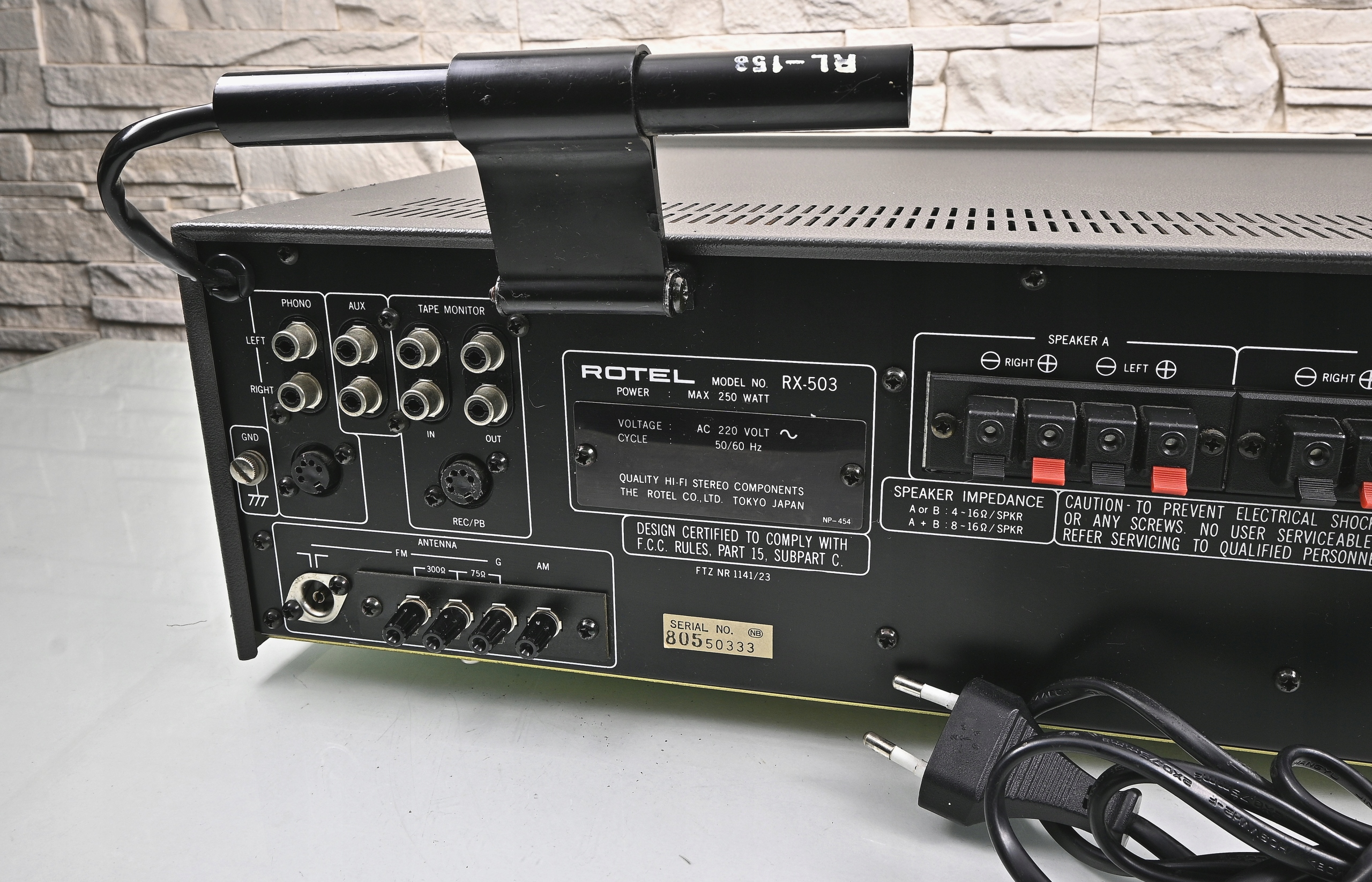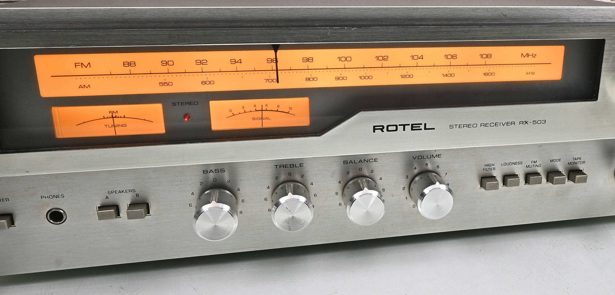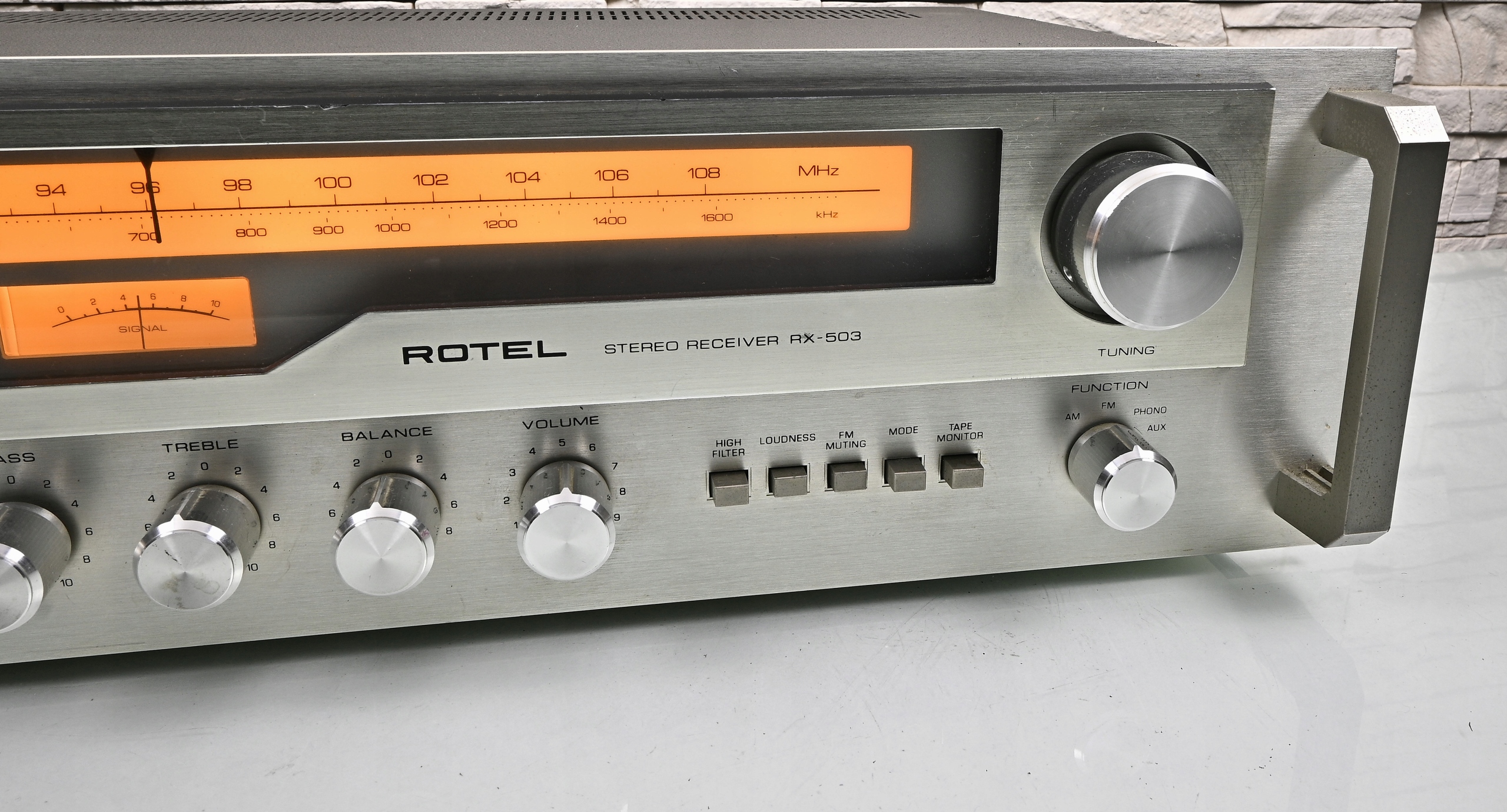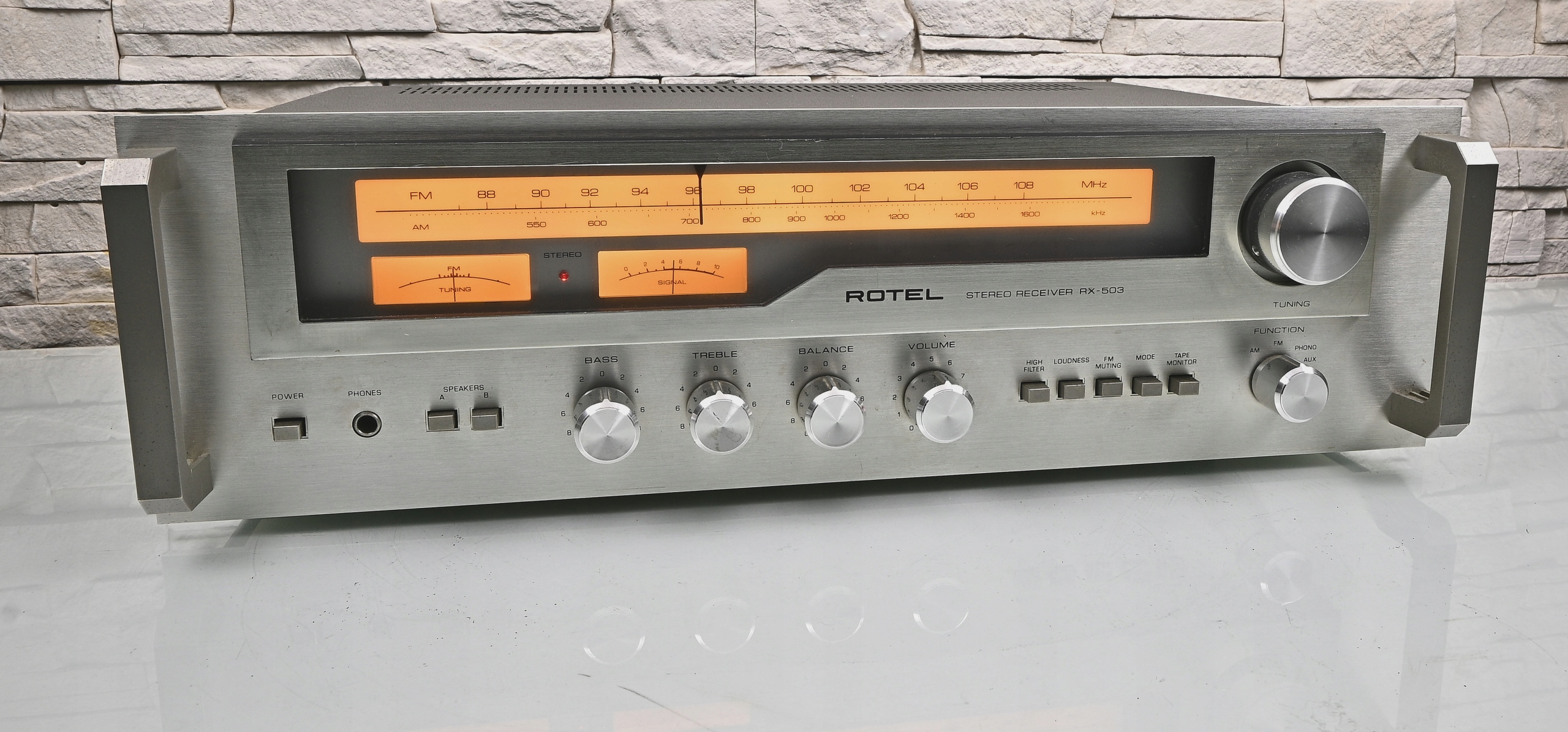 Предмет продажи - встроенный стереоресивер Rotel RX-503. Эта модель, выпускавшаяся с 1979 по 1981 год, представляет собой вершину инженерной мысли Rotel. Его ценят за высокое качество изготовления, отличную секцию тюнера и сильный, динамичный звук.