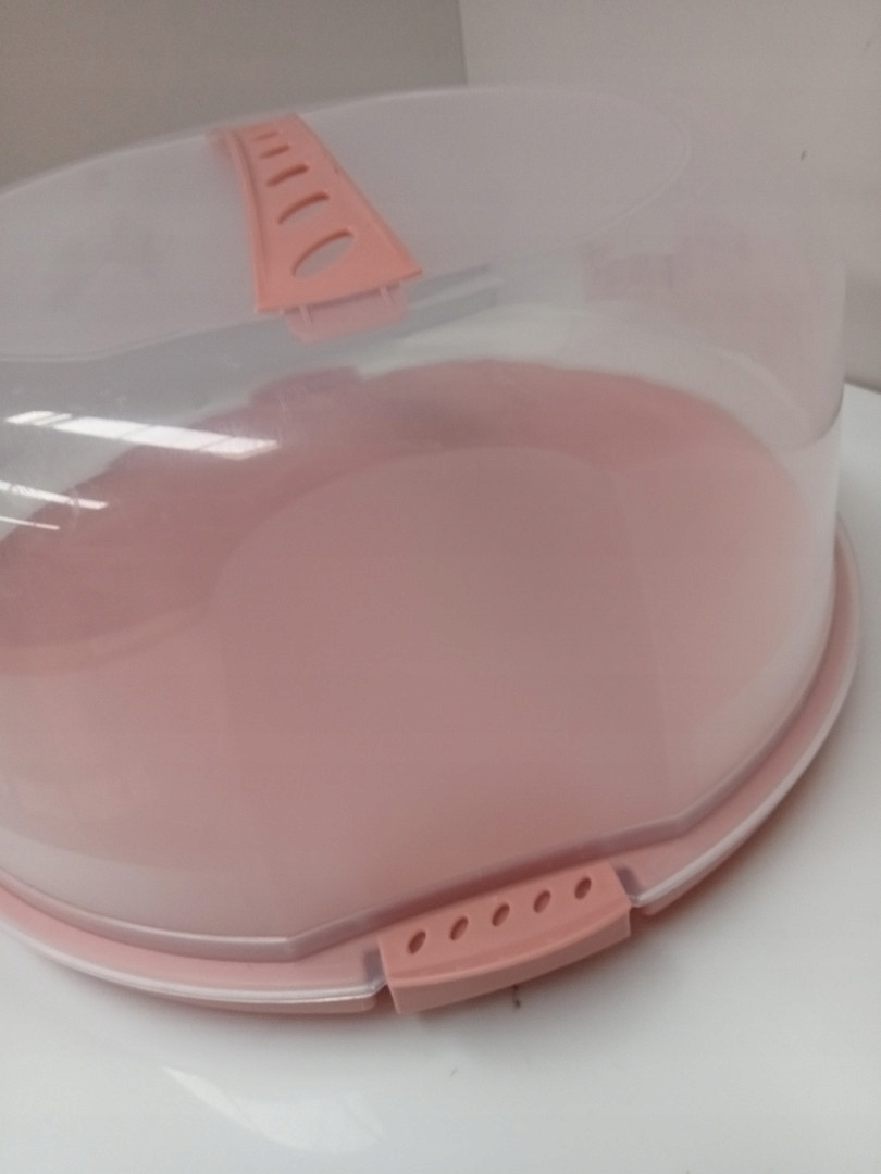 Комплект поставки: 1 пластиковая коробка для тортов и пирожных, состоящая из тарелки и крышки с ручкой - прозрачная/розовая. Сделано в Швейцарии. Размеры: переносной контейнер для теста, общие размеры 35,5 x 34,5 x 16,5 см (Д x Ш x В) – внутренние размеры 29 x 29 x 12 см – максимальная внутренняя высота 12 см – цвет: крышка прозрачная, верх, застежки и ручка розовые. Применение: этот высокий контейнер для теста обеспечивает хранение хлебобулочных изделий без запаха, стабильную транспортировку благодаря двум защелкам - продукты дольше остаются свежими. Особенности: портативная коробка для торта из высококачественного пластика (ПП) - подходит для контакта с пищевыми продуктами, не содержит BPA - можно мыть в посудомоечной машине. Комфорт: устойчивый контейнер для тортов для хранения и транспортировки тортов и тортов – отделения внизу позволяют легко нарезать ровные кусочки.