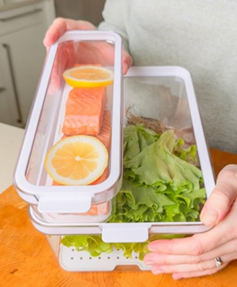 ➡️ Съемная вставка с отверстиями позволяет стекать жидкости, защищая продукты и дольше сохраняя их свежими.