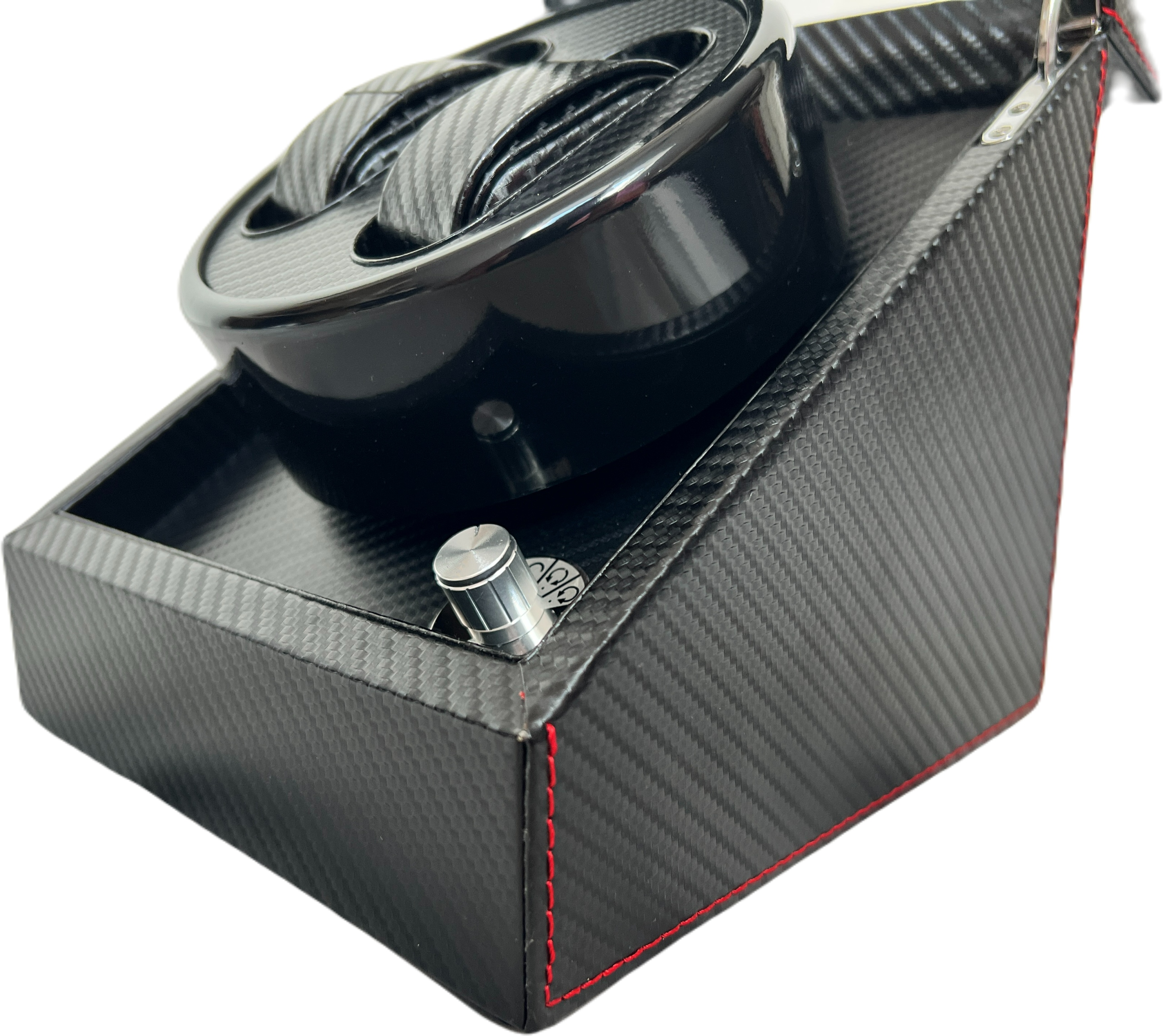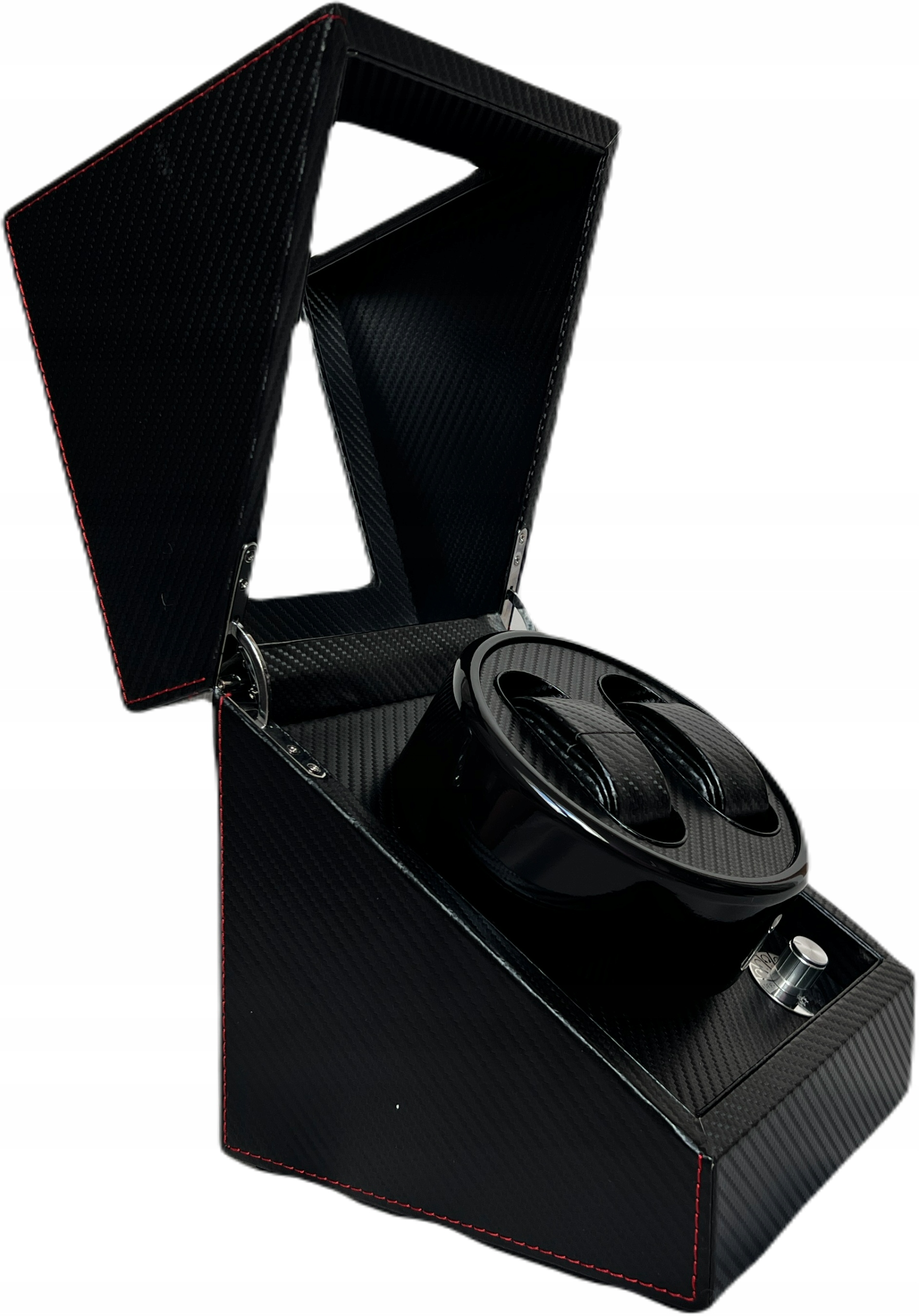 Чрезвычайно функциональный автоматический ротомат для двух часов. Изготовлен из элегантной черной экокожи, прострочка красной нитью дополнительно увеличивает привлекательность футляра. Благодаря черному цвету он прекрасно вписывается в любой интерьер. Устройство обеспечивает автоматический подзавод часов с автоподзаводом, заменяя наручные механизмы.