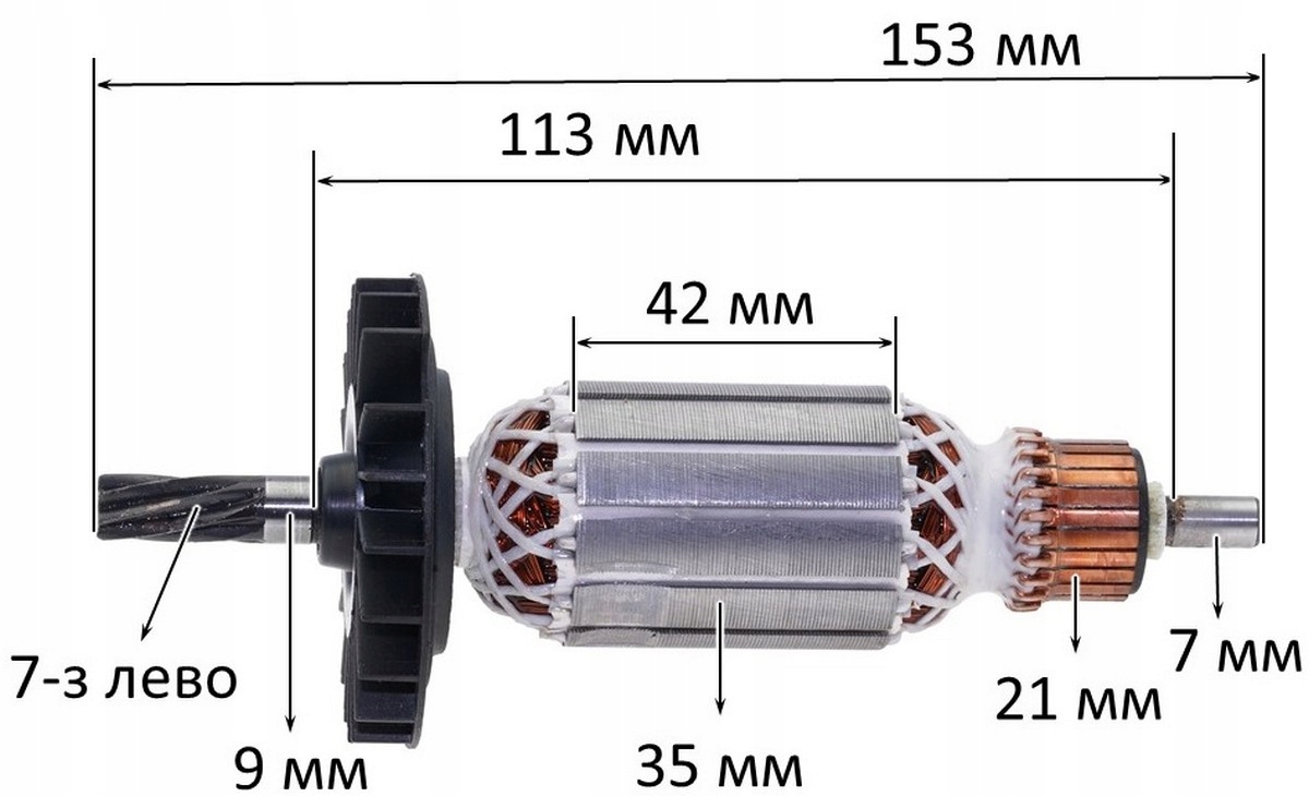 - Диаметр коммутатора: 21 мм