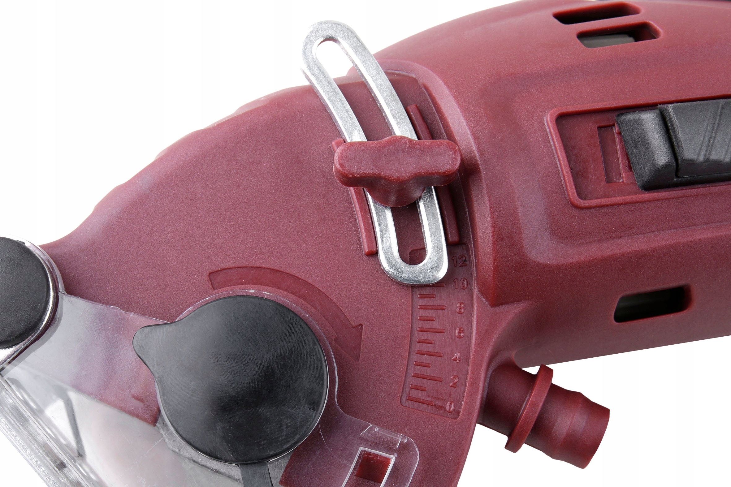 Прибор оснащен головкой, позволяющей точно определять глубину реза в диапазоне от 0 до 12 мм. Выбранную глубину можно очень точно установить с помощью удобной шкалы и надежно зафиксировать на заданном значении с помощью ручки. Это решение гарантирует, что мы не будем резать ничего сверх установленной глубины.
