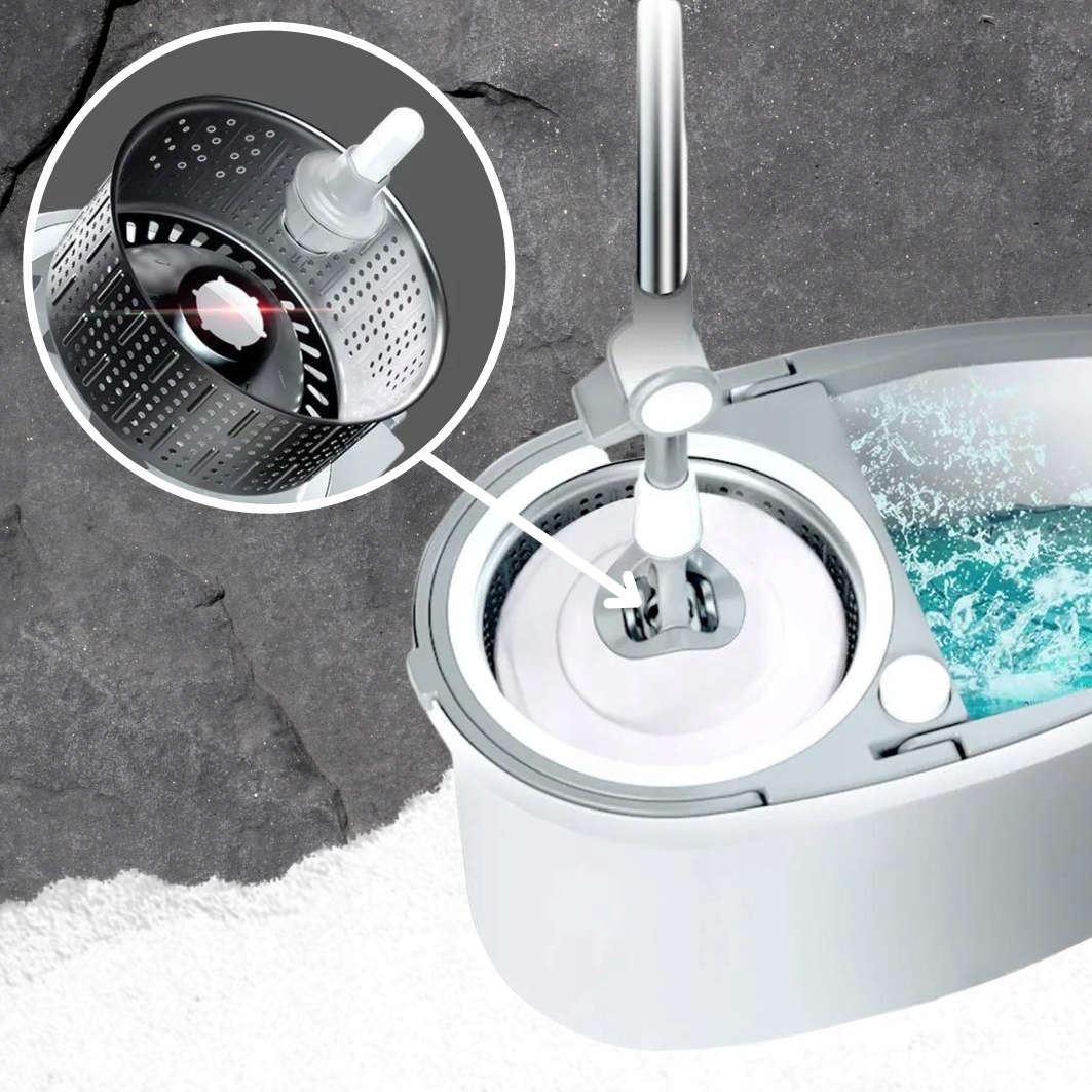 Обладает исключительной практичностью, эргономичностью и динамикой. Вращающаяся металлическая крыльчатка из дополнительной камеры позволяет быстро всасывать и сушить швабру, а вместительное ведро легко переносить благодаря удобной ручке. Благодаря крышке на дне ведра воду можно легко вылить после мытья. Швабра идеально подходит для чистки панелей, паркета, плитки и ковров ПВХ.