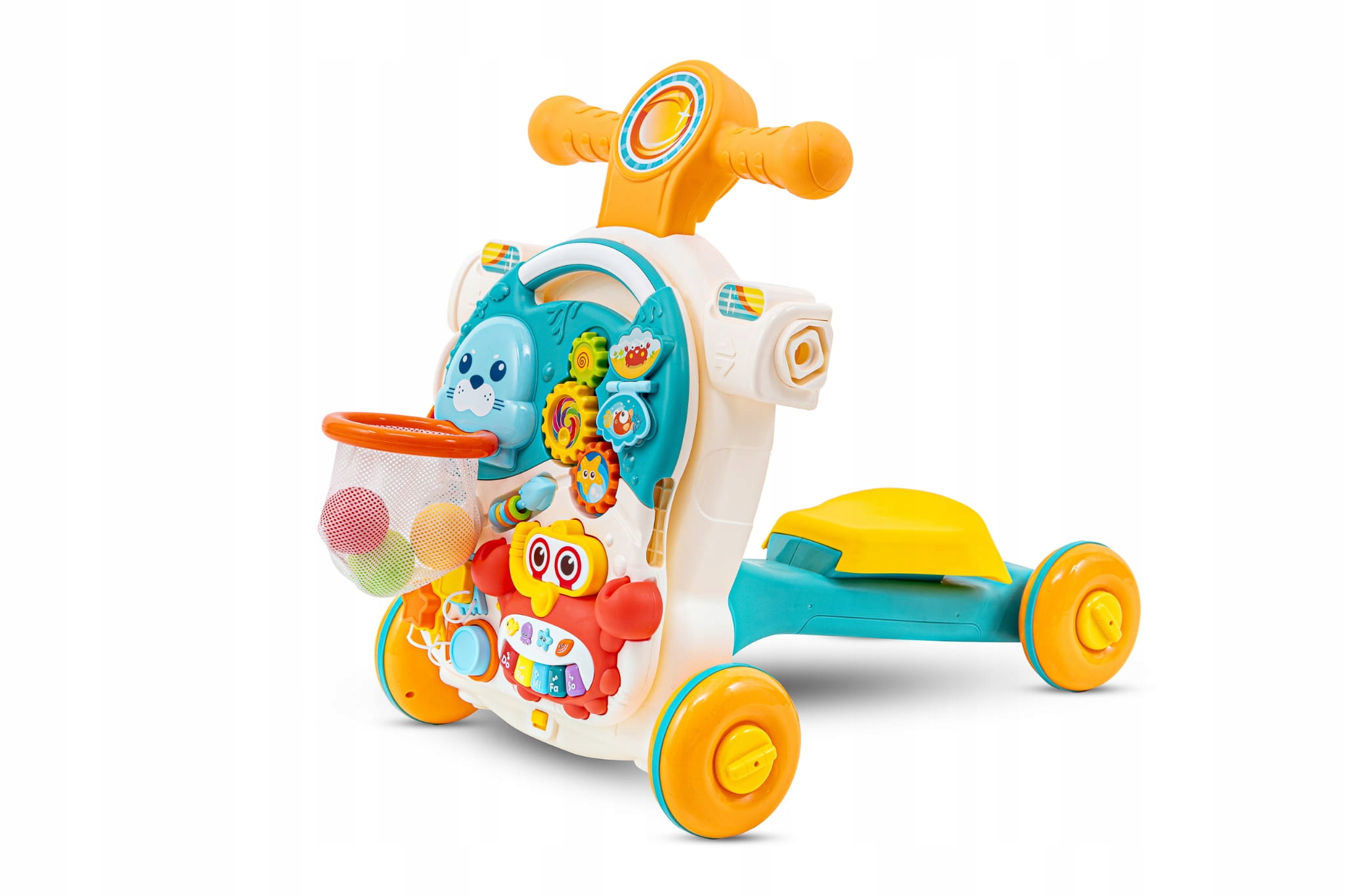 - Игрушка может быстро трансформироваться в удобную каталку, давая малышу свободу передвигаться по дому.