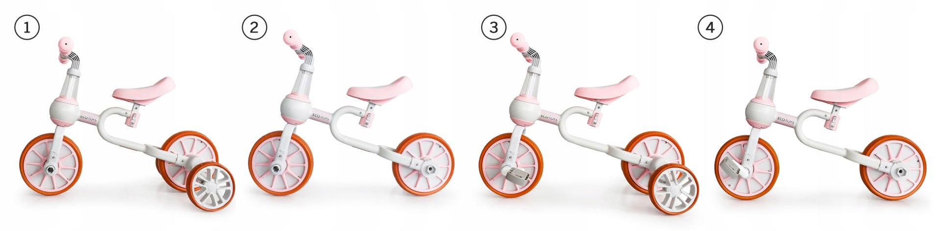 ⭐rower Cross -Country Bike для детей 4in1 Розовые педали Розовые экотои