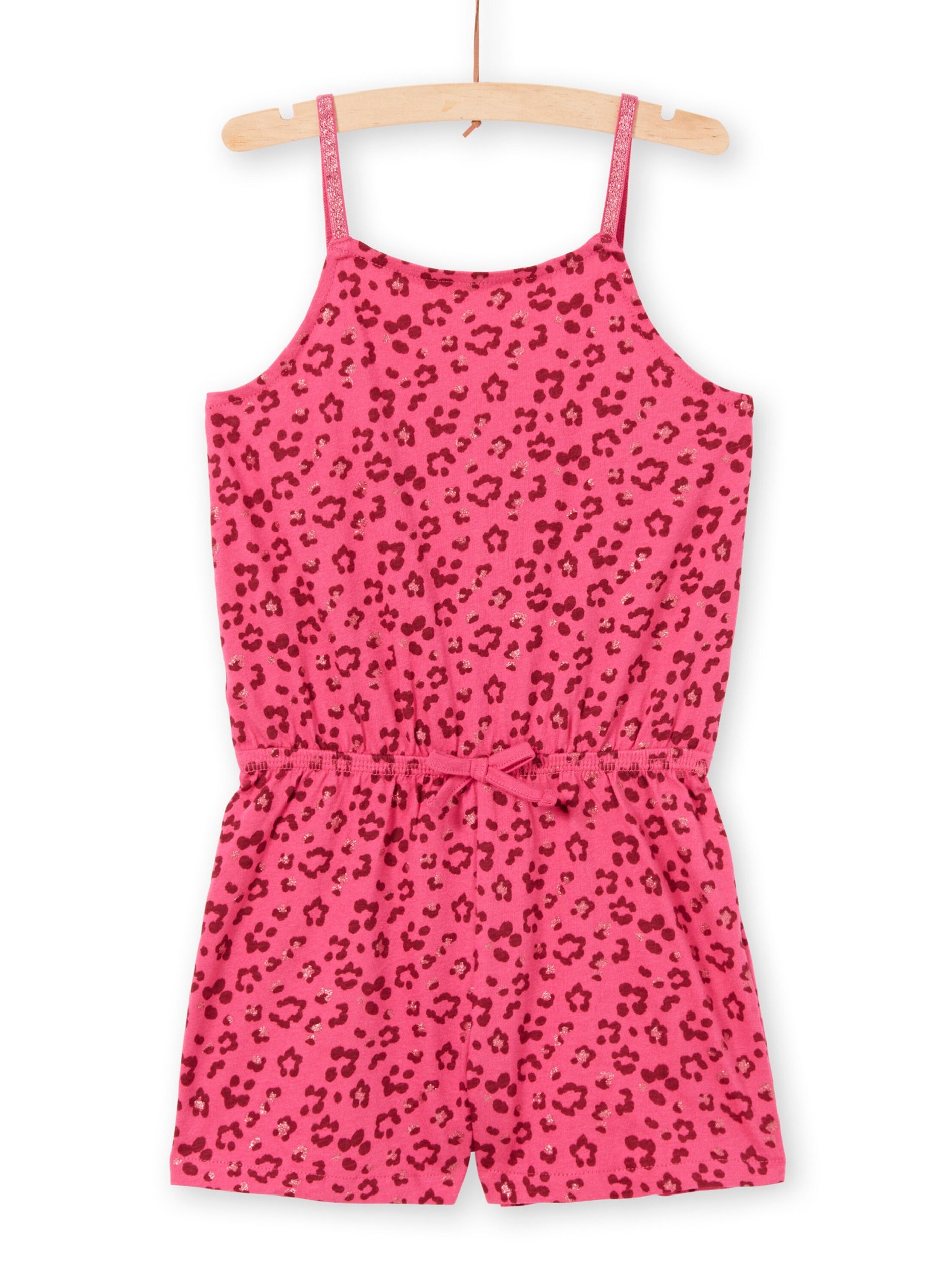 Розовый комбинезон с леопардовым принтом – стильный выбор для вашей маленькой модницы! Костюм имеет изящные бретели из волокон Lurex®, которые добавляют элегантности. Комбинезон также расшит пайетками, которые придают ему блеск и неповторимый шарм.