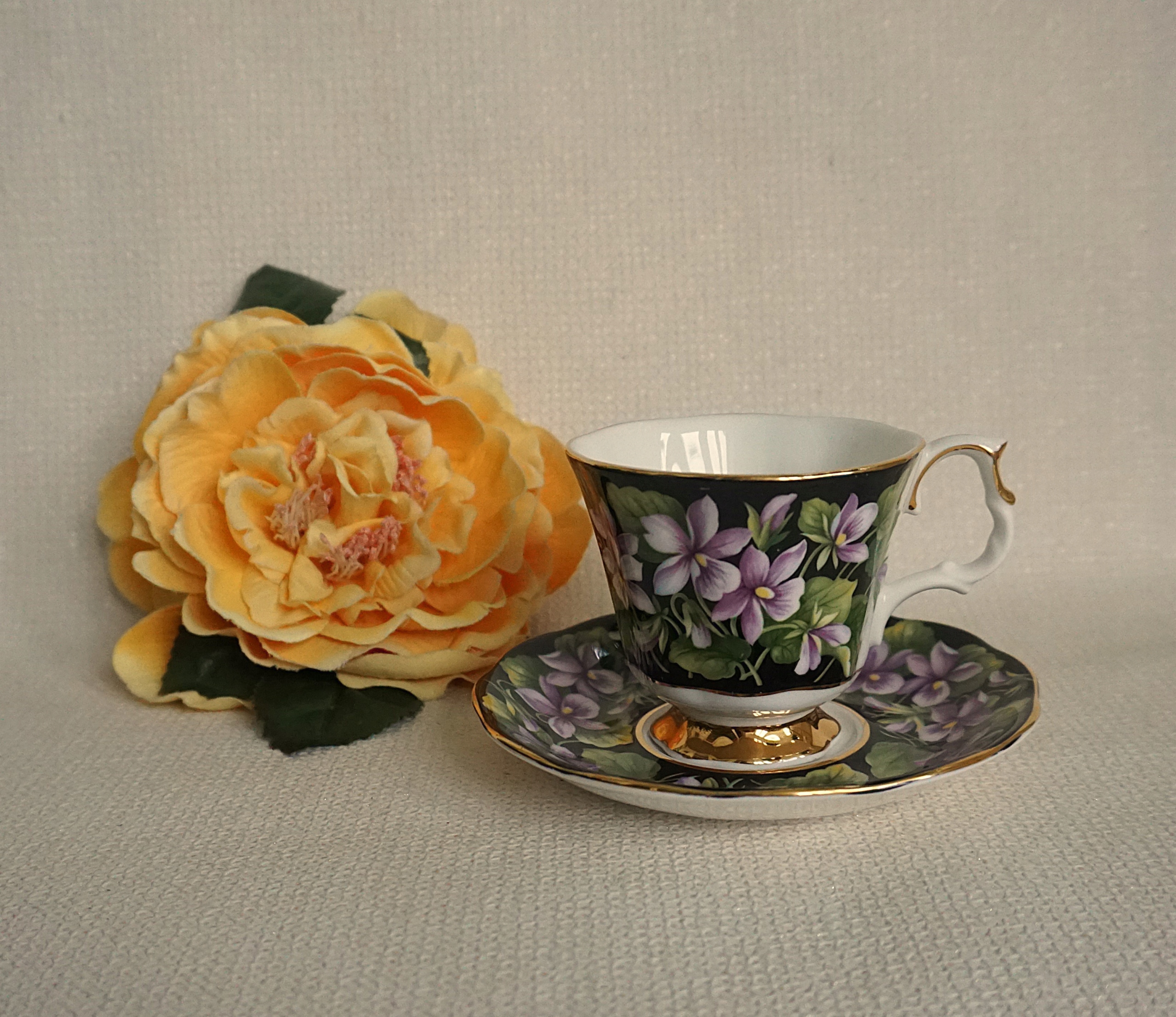 Сегодня рекомендую необыкновенно красивую, очень эффектную чашку с блюдцем английского производителя Royal Albert, линию Provincial Flowers. Пурпурно-фиолетовый декор.
