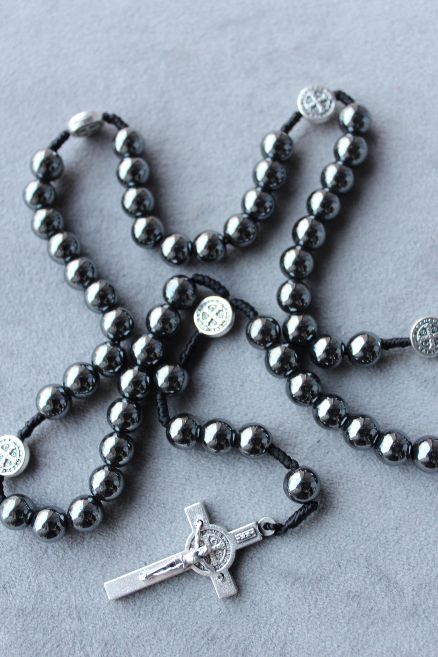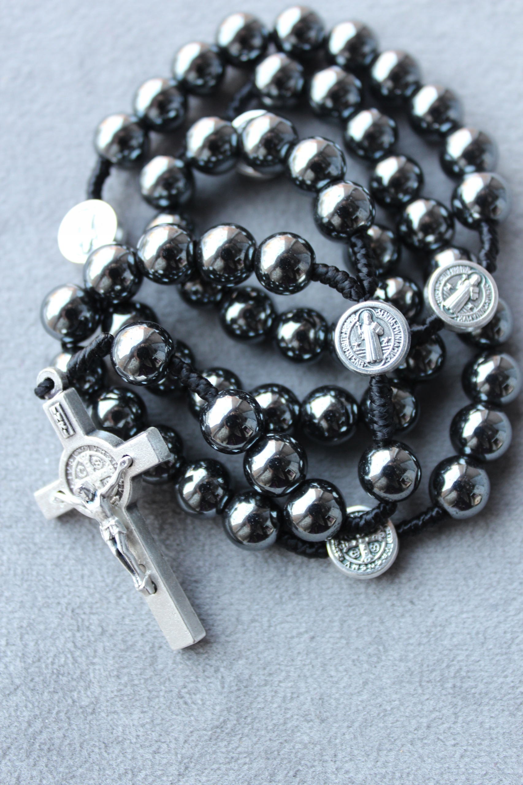 Розарий из камней гематитовой крест святого святого Бенедикта