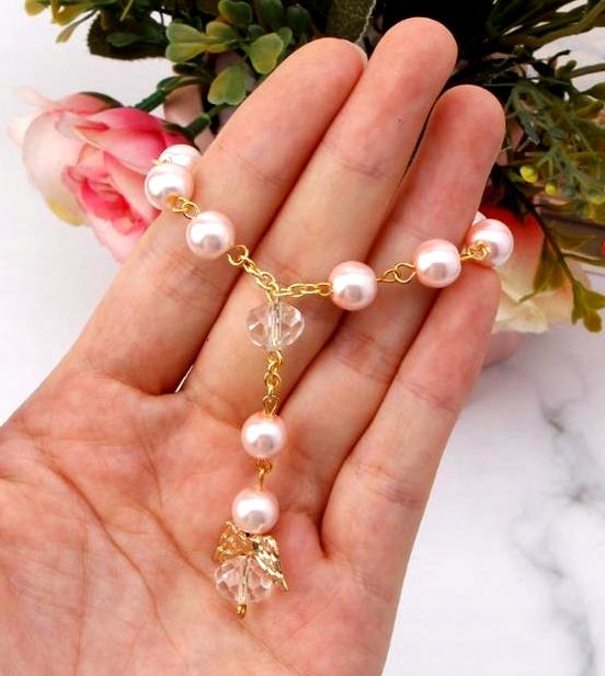 Четки с хрустальным жемчугом, позолоченные и украшенные. С прекрасным ангелочком из хрустальной жемчужины в качестве головы, металлическими крыльями и крошечным сердечком внутри.