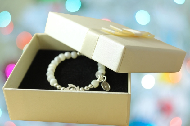 Браслет упакован в кремовую коробочку с бантиком.
