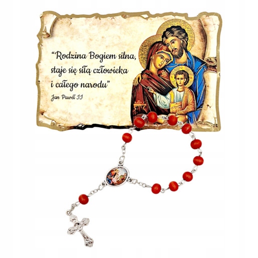- Этот уникальный набор состоит из магнита с изображением Святого Семейства и декады четок, разъем которого представляет собой одну и ту же икону.