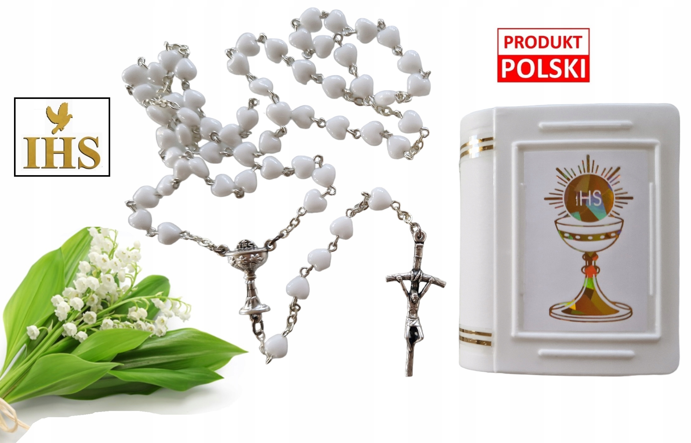 РОЗАРІЙ ДЛЯ ПРИЧАСТЯ Біла скринька-серце для причастя