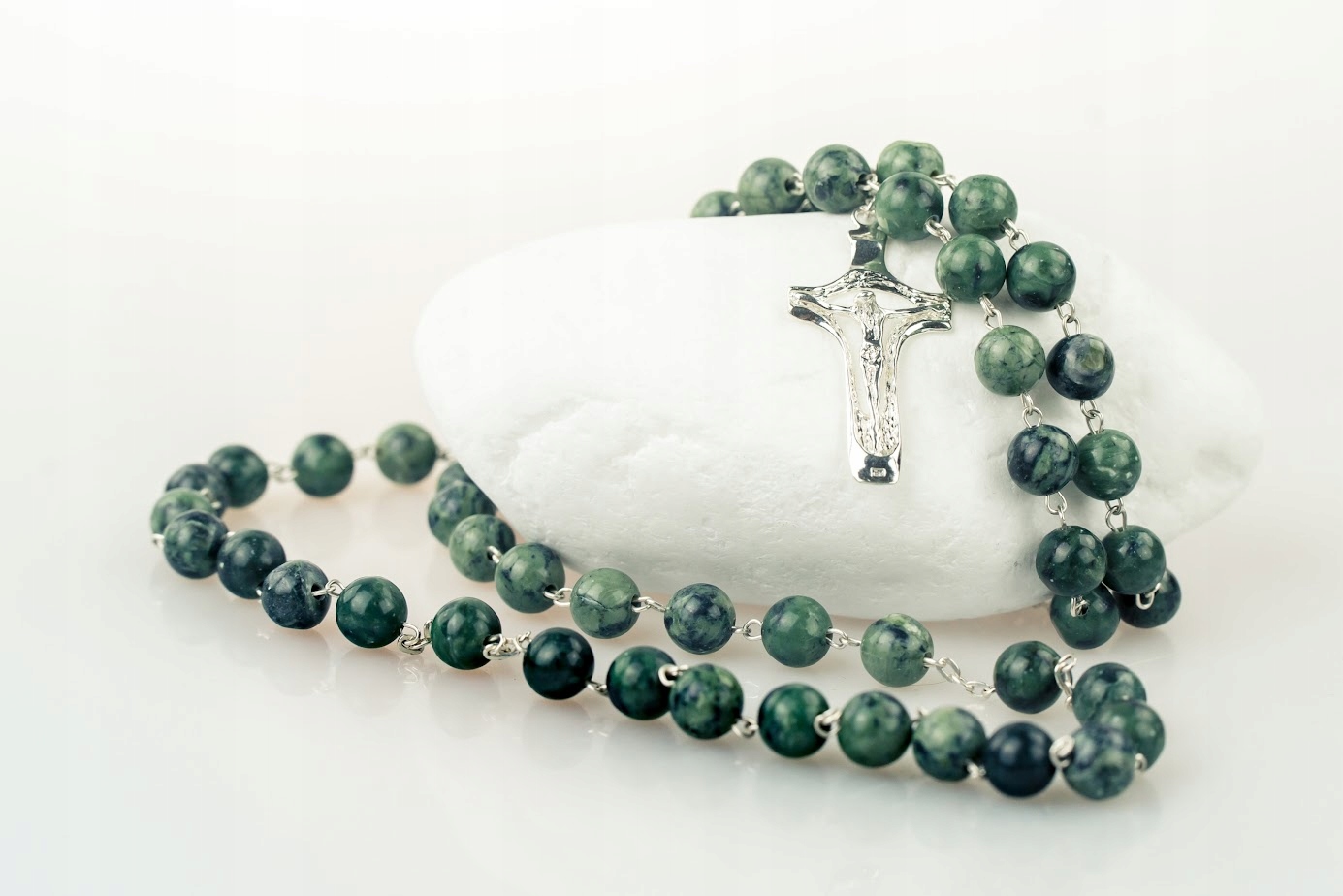 Каждая бусина, из которой состоят наши четки, тщательно изготовлена из тщательно отобранных кусков антигоритового серпентинита. Этот камень мы добываем из польского месторождения в Наславице, у подножия Сленжского массива – места с богатой историей и природными силами. Его красота заключается в богатстве оттенков зеленого: от нежной дымки, глубокого цвета морской волны и нефрита до тонких переходов к загадочному черному. Это цветовая палитра, отражающая силу и уникальность природы.