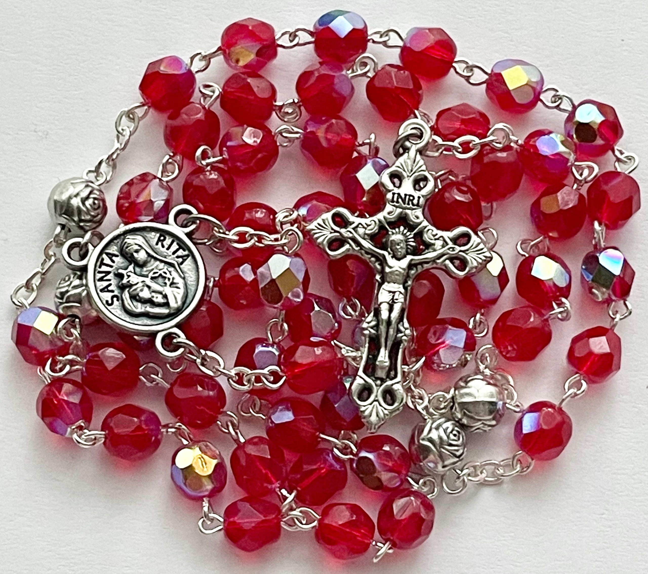 КРАСНЫЙ ХРУСТАЛЬНЫЙ ЧЕТКИ РЕЛИКВИЯ СВЯТОЙ РИТЫ МОЛИТВА СВЯТОЙ РИТЫ