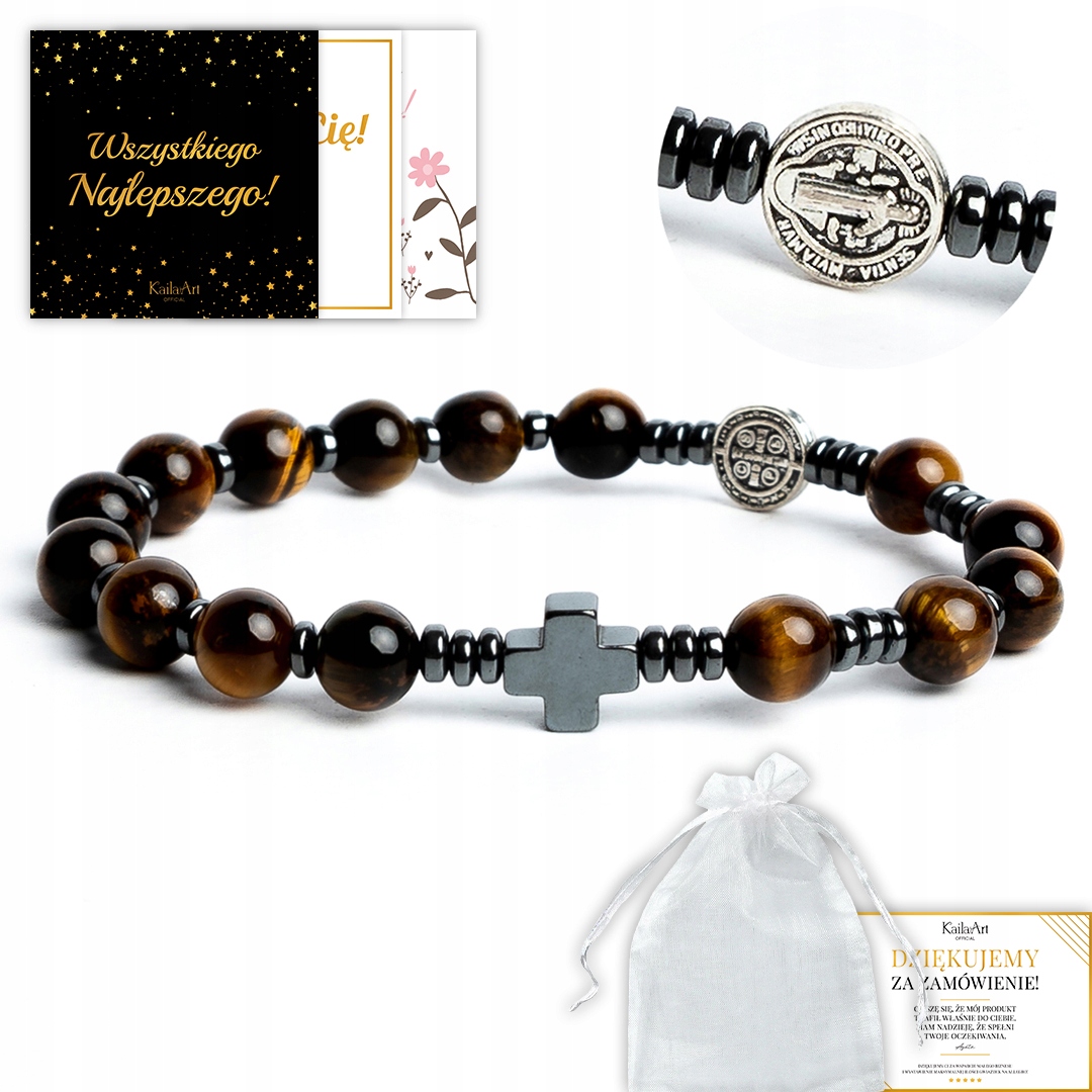 Розарий под рукой браслет с крестом св. Бенедикта Гематитового Глаза тигра - унисекс h1>