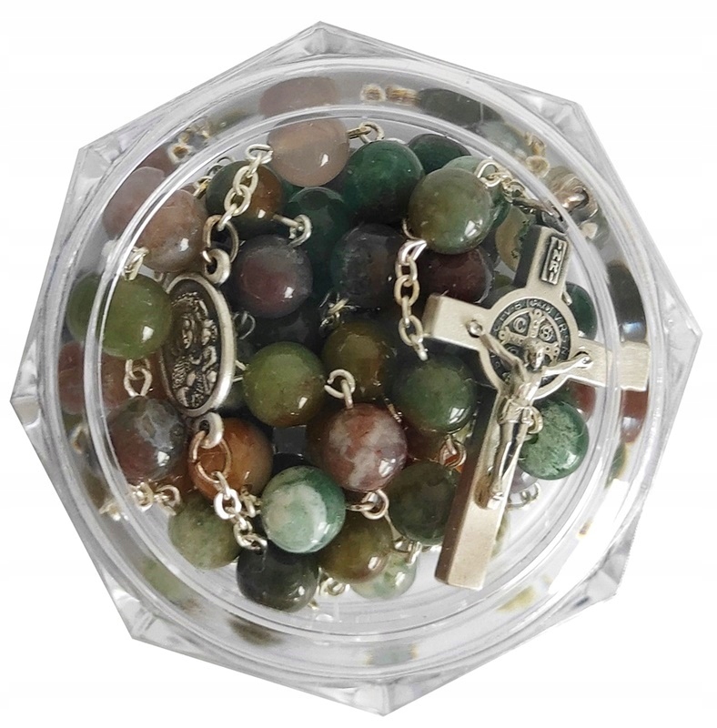 КРАСИВЫЕ ЧЕТКИ ИЗ НАТУРАЛЬНОГО КАМНЯ - ИНДИЙСКИЙ АГАТ С СВ. БЕНЕДИКТ.