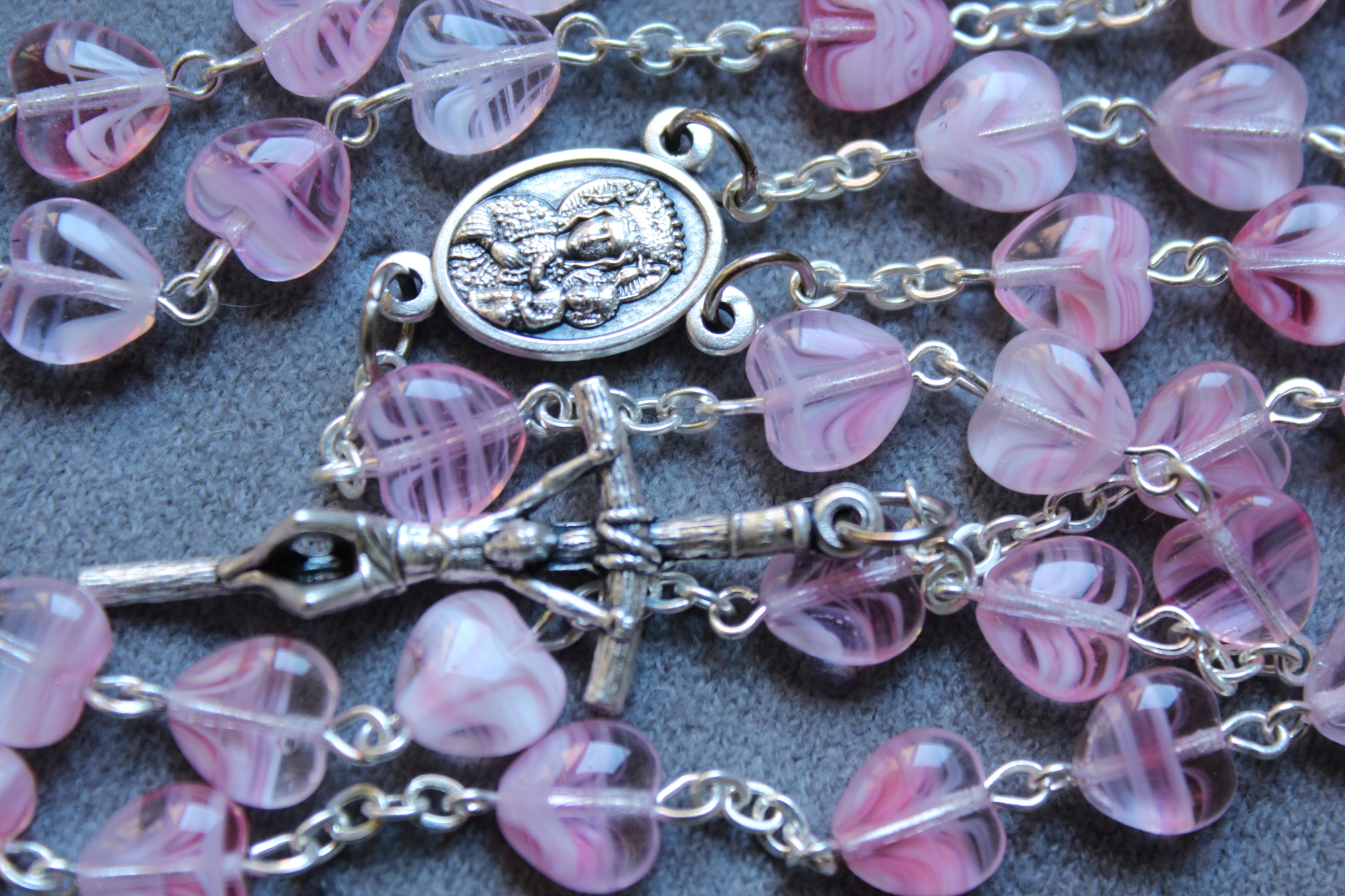 Красивые четки для причастия - розовые сердечки