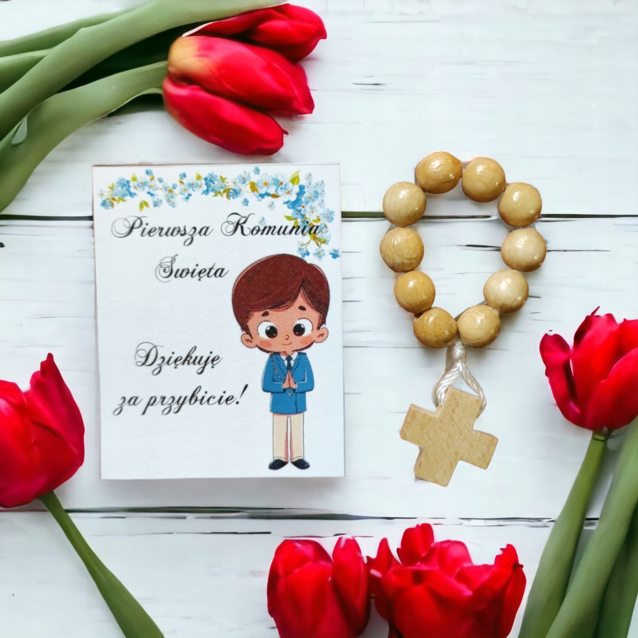 Сувенир для гостей по случаю Святого Причастия - БЛАГОДАРСТВЕННАЯ ОТКРЫТКА И ДЕСЯТКА ЧЕТОК