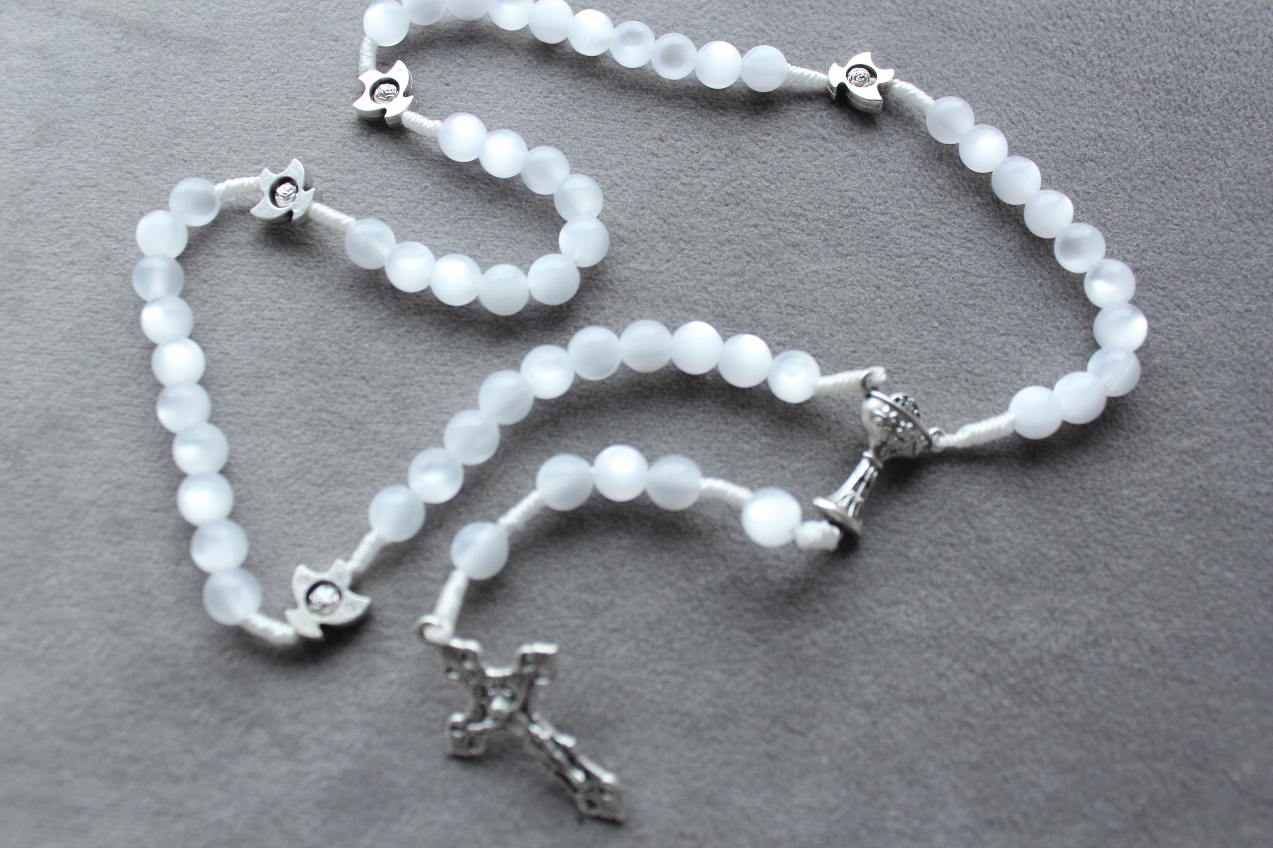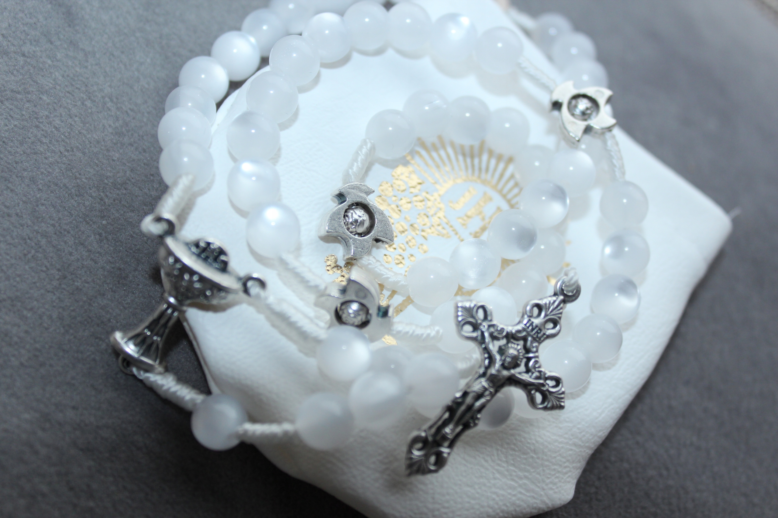 РОЗАРІЙ ПРИЧАСТНИЙ Причастя Madre Perla WHITE IHS + футляр НА ШНУРКУ