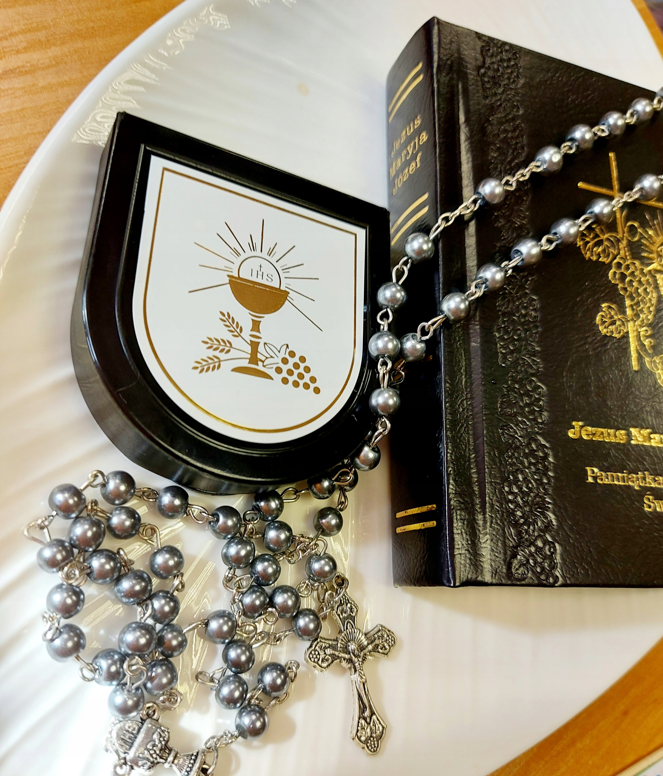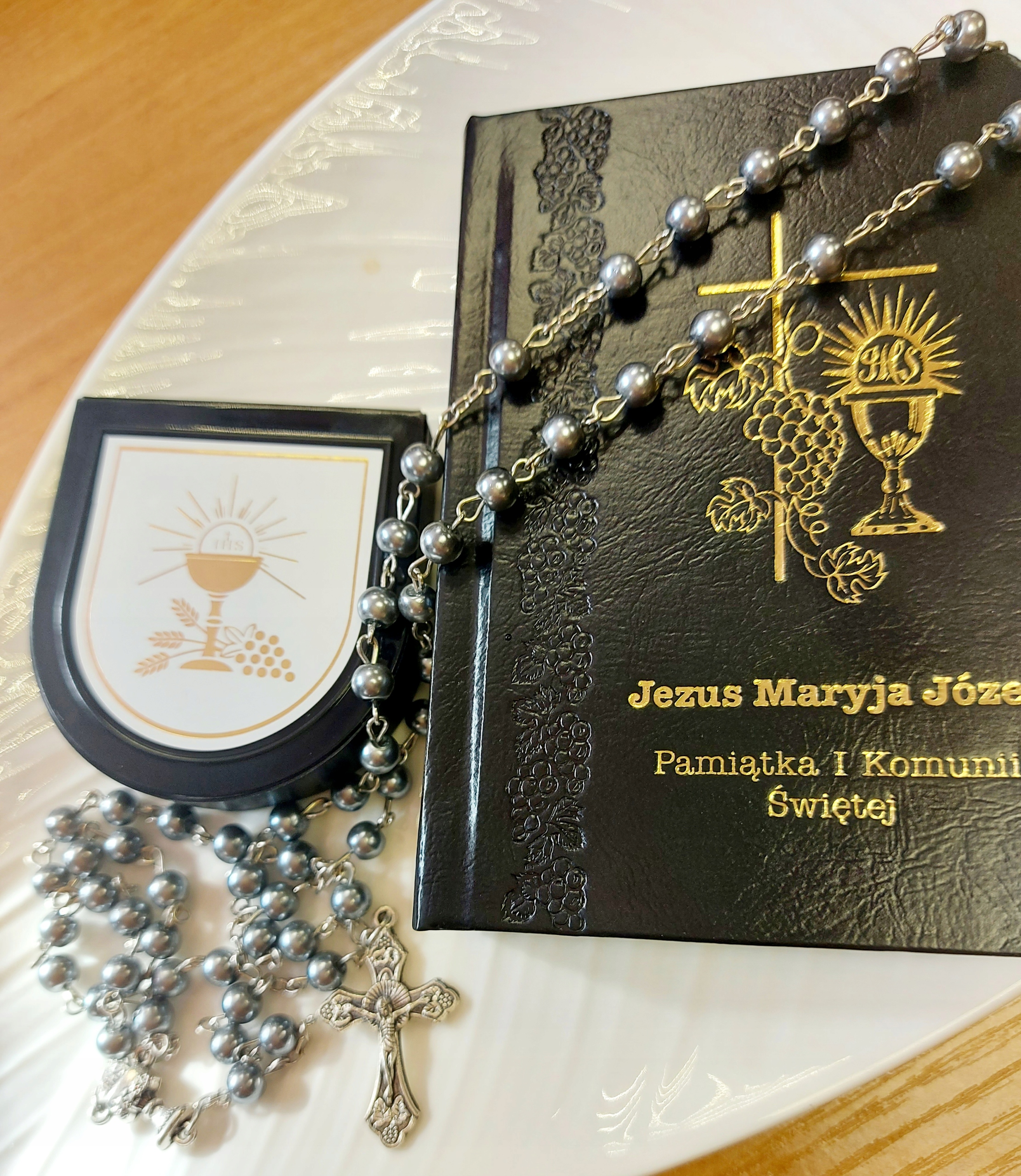 Розарій сірої кулі, перше причастя, чорна книга, молитовник, футляр