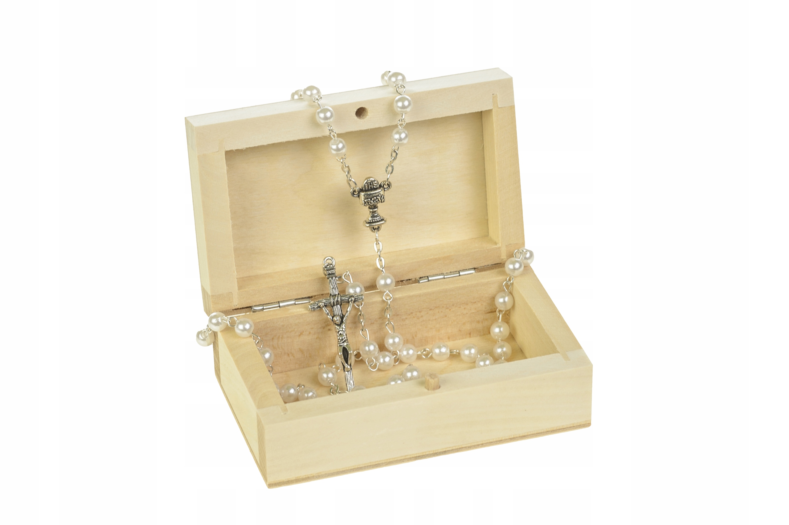 На представленном ниже аукционе мы предлагаем Вам красивые четки с круглыми бусинами, дополнительно украшенные чашеобразным соединителем. Благодаря возможности гравировки коробки, вы можете персонализировать ее, предоставив для гравировки любой текст. Гравировка, представленная на фотографиях, выполнена с помощью лазерной технологии. Наследнику стоит выбрать подарок, который будет напоминать вам о дне вашего первого причастия. Позаботьтесь о том, чтобы навсегда сохранить мимолетные воспоминания и закажите индивидуальную гравировку с пожеланиями или посвящением.