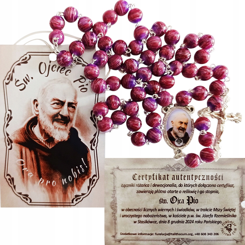 Розарий с реликвией 3 -й степени сертификата подлинности Св. Отца Пио
