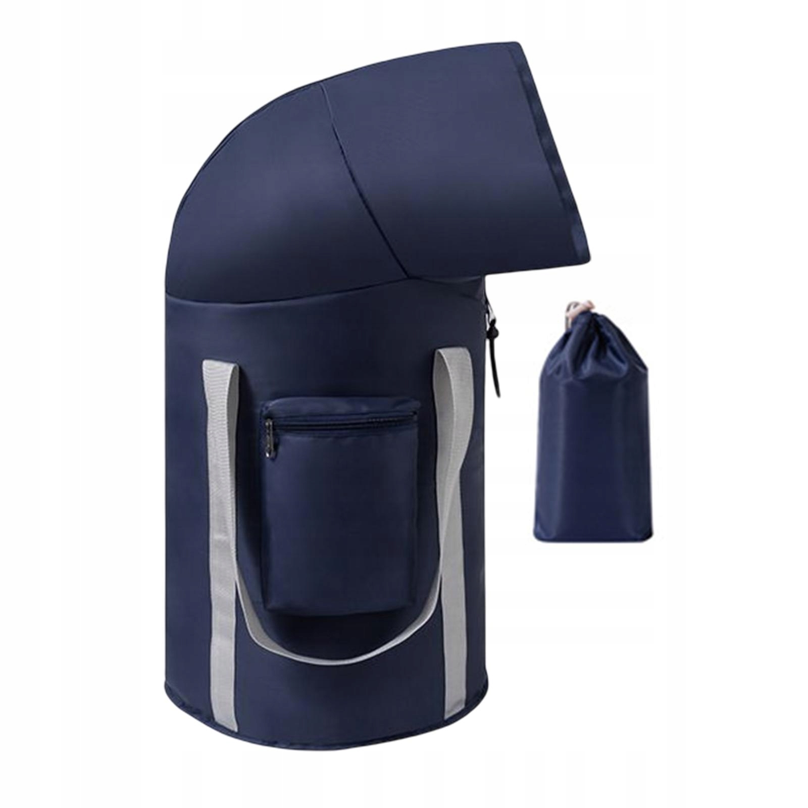 Складное ведро для ванны для ног темно-синего цвета.