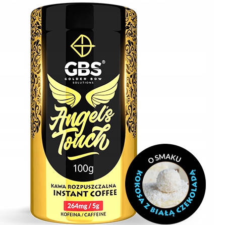 Растворимый кофе ANGEL'S TOUCH с высоким содержанием кофеина от GBS Golden Bow Solutions с насыщенным ароматом. (кокос с белым шоколадом)