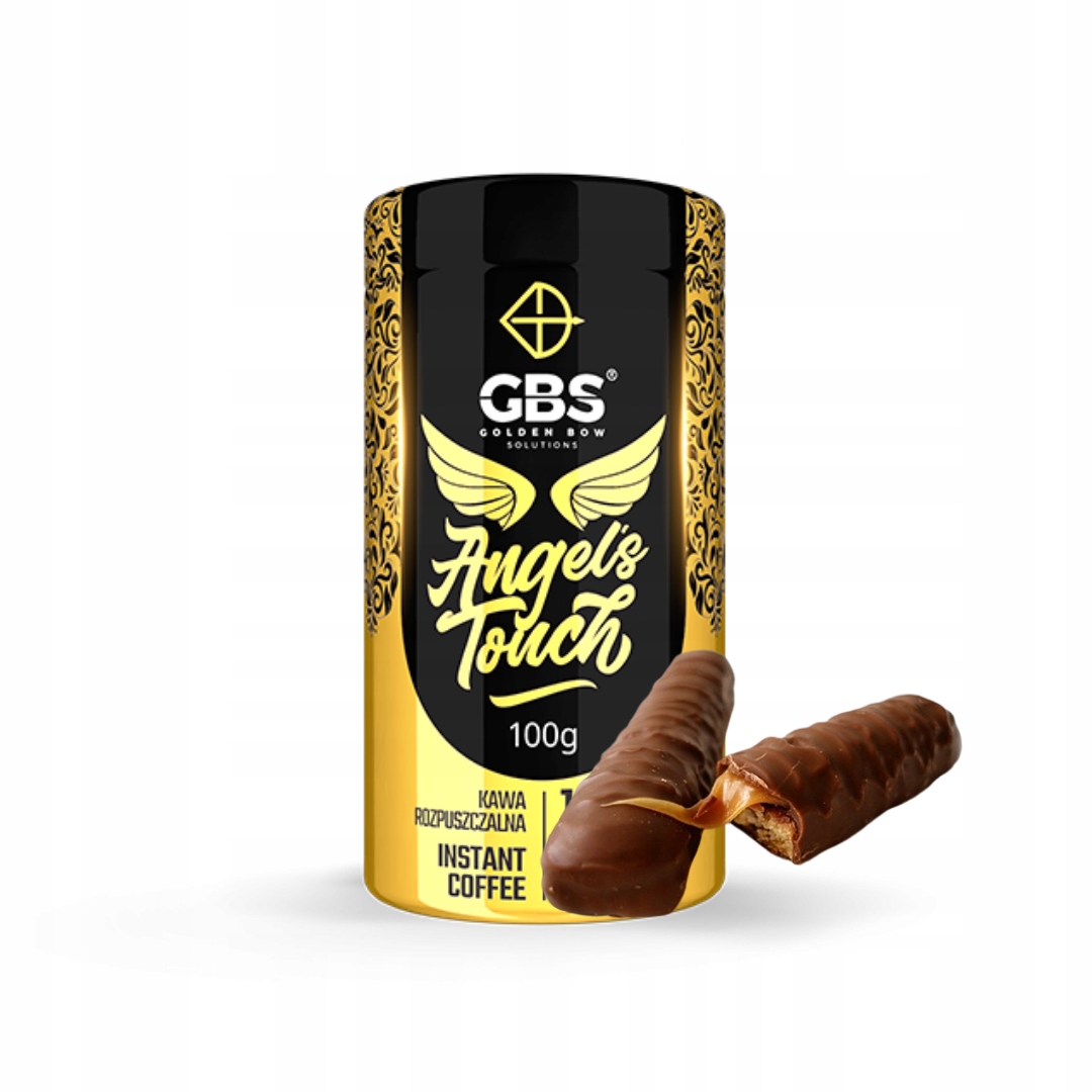 Растворимый кофе ANGEL'S TOUCH с высоким содержанием кофеина от GBS Golden Bow Solutions с ароматом Twix - карамель и батончик печенья.