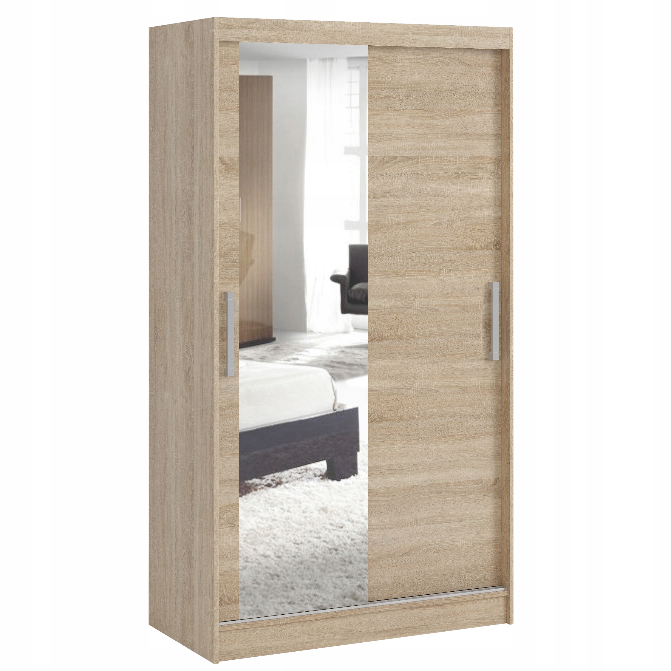 Стандартная ширина в сочетании с практическим планом внутренней части раздвижного гардероба идеально подходит для комнат с небольшой площадью, где не хватает места для хранения. Эта мебель разделена на две основные части, в одной из них есть твердый хромированный стержень для вешалок, в то время как в остальных четырех равных размерах полки с универсальным применением. На высоте глаз есть два дополнительных местах, идеально подходящих для неиспользованного оборудования или сезонной одежды.