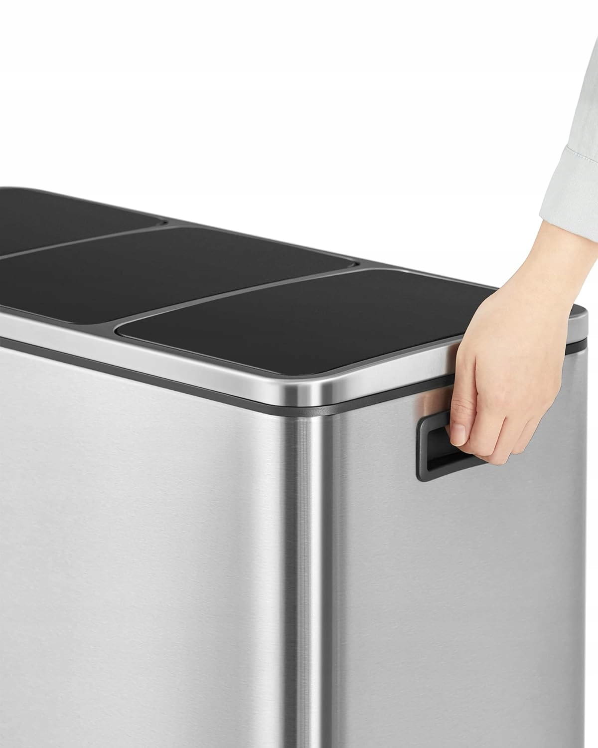 Корзина для мусора с 3 отдельными съемными контейнерами хорошо подойдет на любой кухне, даже самой маленькой. Стоит отметить, насколько важна в настоящее время сортировка мусора. Разделяя мусор, мы оказываем значительное влияние на окружающую среду вокруг нас. Правильно разделяя его, мы уменьшаем тонны мусора, представляющего угрозу для жизни людей и животных. Мы также можем разместить мусорное ведро в комнате или гараже, где скапливается мусор. Поверхность корзины, не оставляющая неприглядных отпечатков пальцев, оправдает ваши самые высокие ожидания. Разве мы не хотим легкой и быстрой уборки? Конечно, можете, и с этой корзиной вы этого добьетесь. Плотно закрывающиеся крышки предотвращают распространение неприятных запахов из корзины.