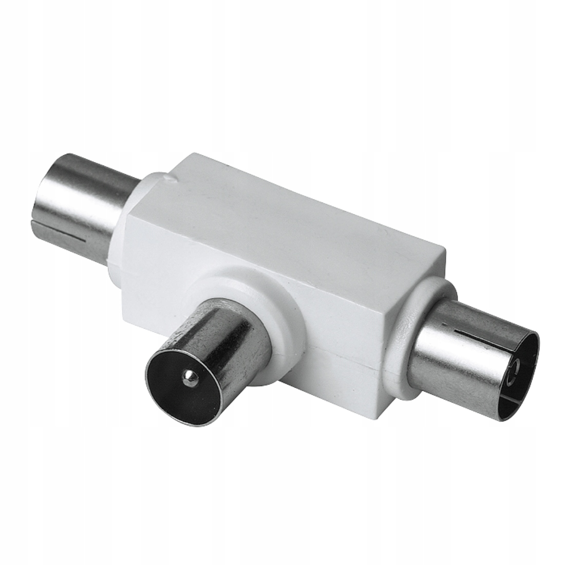 Хорошее качество, экранированный коаксиальный разветвитель радиосигнала: 1 штекер (вилка) - 2 гнезда (розетка).