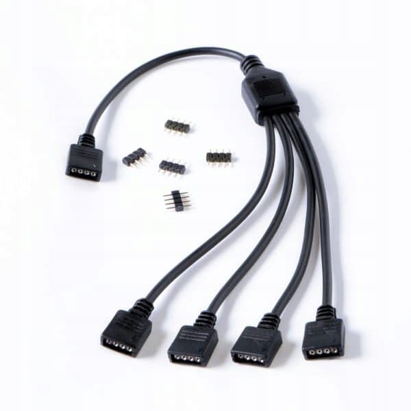 Благодаря разветвлению RGB 1-D-4 вы можете легко расширить один разъем RGB или адресуемый RGB (ARGB) на материнской плате или контроллере для подключения к 4 устройствам RGB, и даже больше, подключая несколько дистрибьюторов последовательно. Совместим со всеми стандартными вентиляторами и лентами RGB 12V и ARGB 5V. Он имеет очень прочный кабель, обеспечивающий длительный срок службы и 5 адаптеров с мужской вилкой для без проблем.
